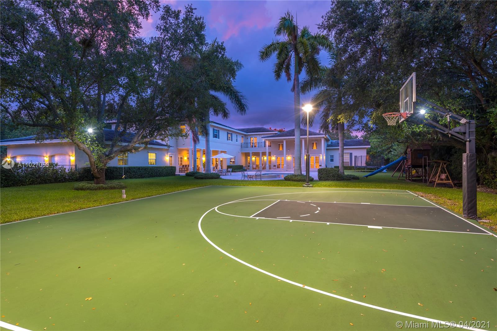 Situated on over an acre, this sophisticated, fully gated private estate features expansive spaces perfect for entertainment with billiard room/library, office with separate entry, volume ceilings, fireplace, elevator & gourmet chef's kitchen overlooking an outdoor terrace & resort style grounds with heated pool. The home offers en suite guest bedrooms, spacious master suite with huge 392 SF walk-in closet and a comfortable sitting area.Additional features include a 3 car garage, full house generator & lighted 1/2 basketball court. Close proximity to nationally ranked schools.