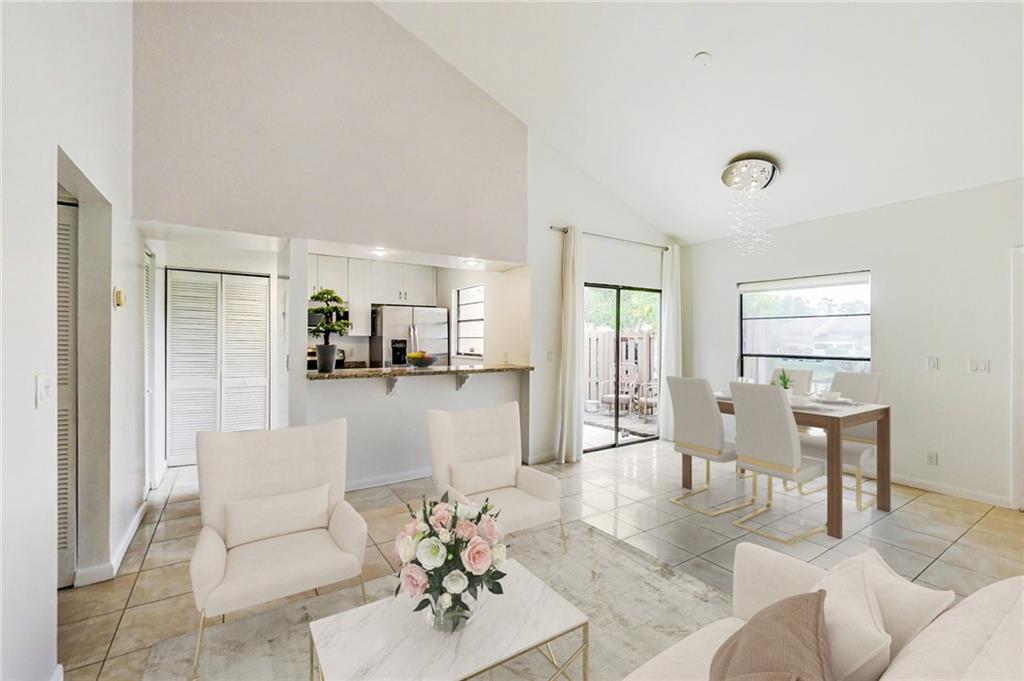 Beautiful and spacious 2 bed 2 bath townhouse tucked among the Davie Golf Courses. Open-concept floorplan and high-volume ceilings give a sense of space and comfort. The updated kitchen with white shaker cabinets, SS appliances, granite counters, eat-at-bar is open to the living area making entertainment a breeze. Enjoy the front patio off the dining area and a large private patio off the primary bedroom w/walk-in closet. Two nicely updated bathrooms complete this great single floor townhouse. Low HOA fee of $275. Amenities include resort style pool, tennis, bbq area and so much more. Conveniently located about 1 mile to Nova University and Broward Collage. Moments to Trader Joe, Westfield Mall, Hard Rock Casino and other great shopping, restaurants, and parks. Can be rented immediately.