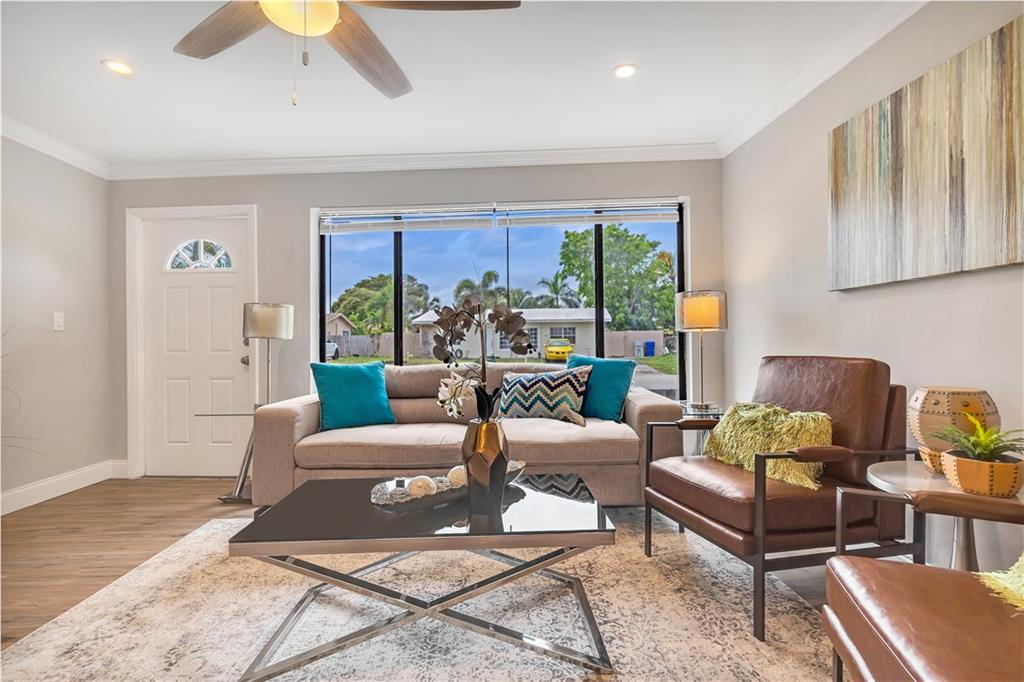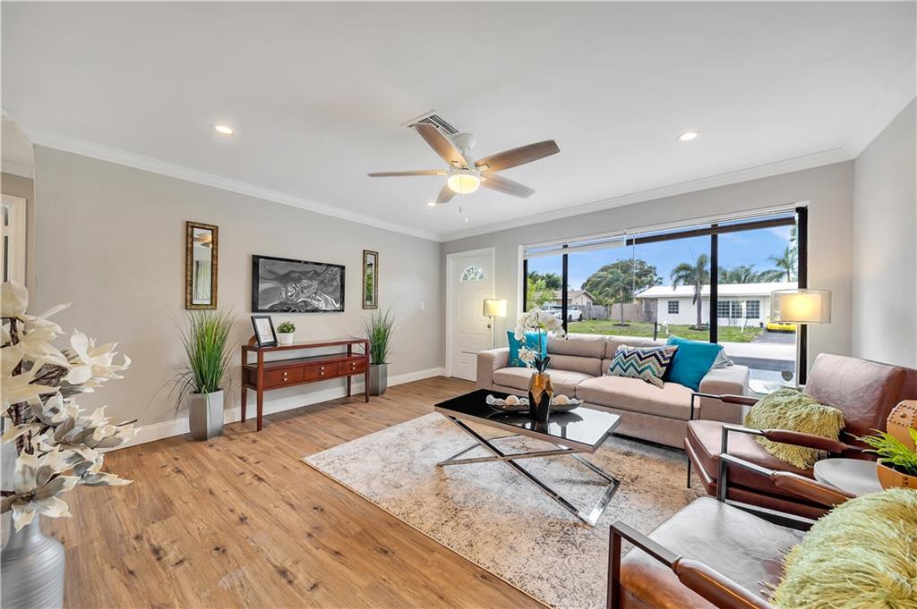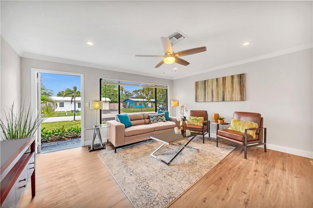 Brand new roof just installed! Amazing 3 bedroom 2 bath home prefect to move in in sought after Pompano Beach! Home features many improvements such as waterproof vinyl flooring, fresh paint in/out, fresh landscape, new fixtures, white shaker wood cabinets with quartz counter and glass subway tile backsplash in kitchen with brand new Stainless Steel appliances, improved modern/beachy bathrooms, barn door on formal dining room and many other upgrades. Great house in a great large lot in a great neighborhood. Minutes to city park with golf course and newly developed beach area with oceanfront restaurants, bars, shops and all the Florida East living has to offer! Can't miss this gem.