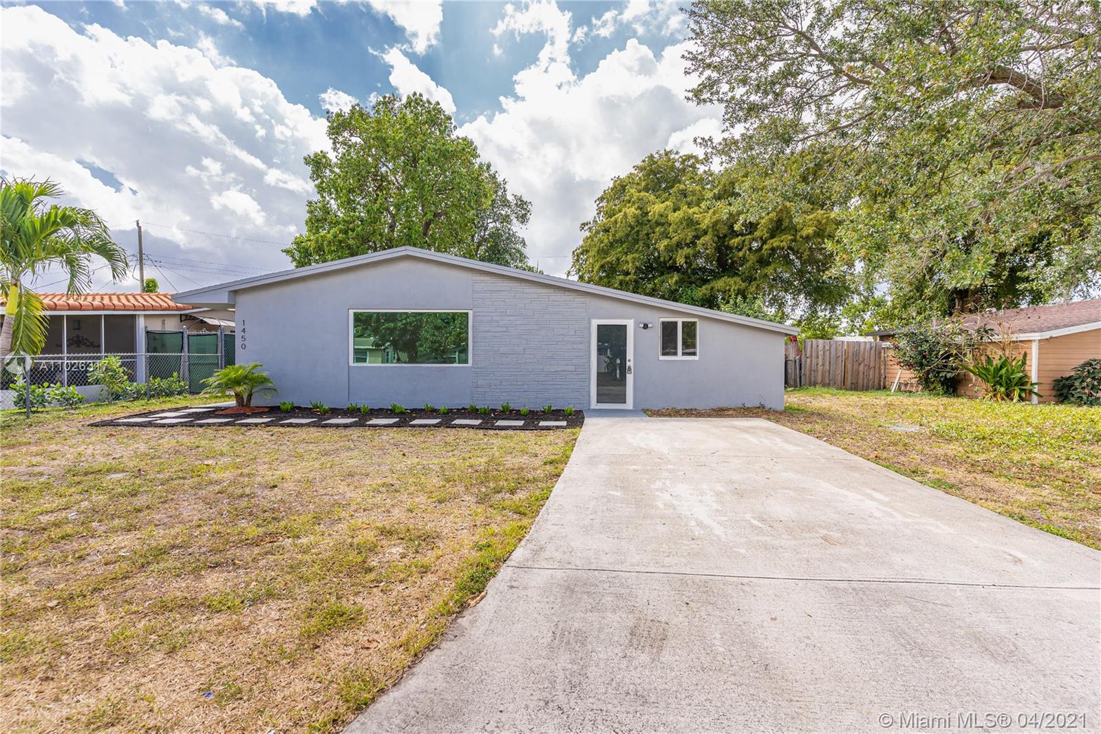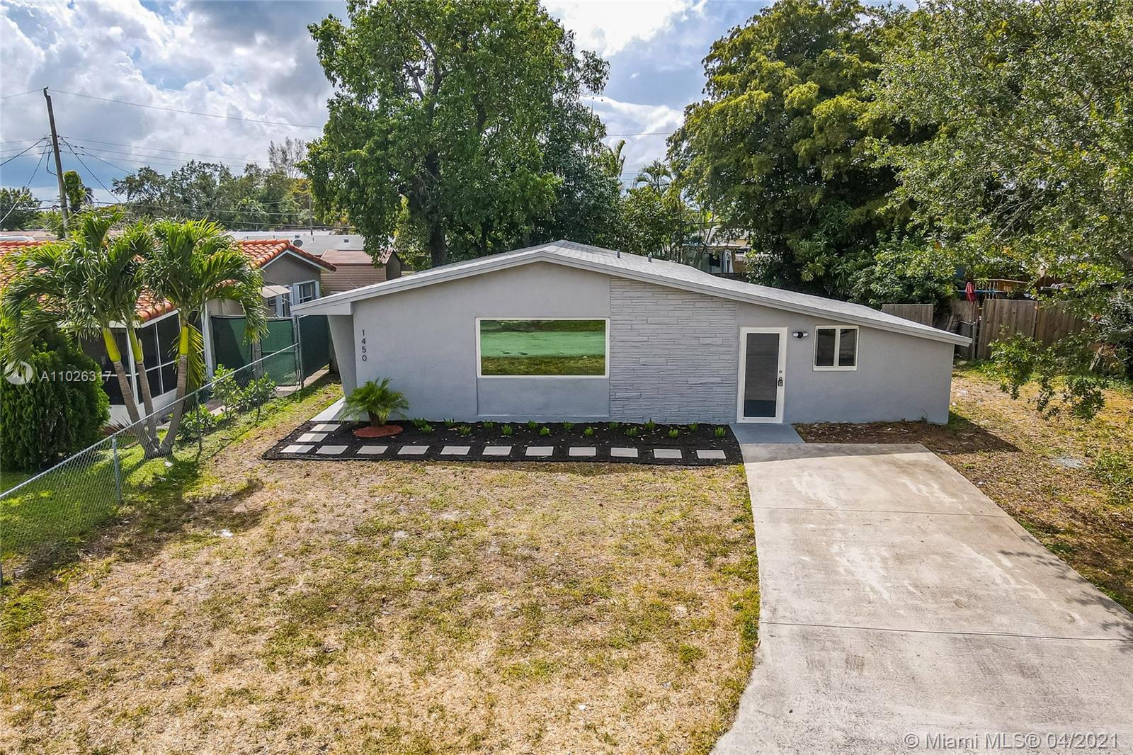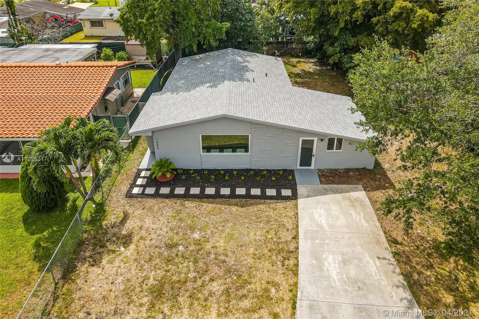 Beautiful updated home with a modern theme ready to move in featuring 3 bedrooms and 2 baths on a quiet street in Hollywood. Crisp and clean design with light filled spaces throughout, white kitchen cabinetry, quartz countertops, SS appliances, brand new light fixtures, modern flooring and an independent utility room for laundry and storage. New roof installed 03/21. Spacious backyard with mature fruit trees and a lush lawn with plenty of room for a boat or RV. Close to highly rated schools, 441, the Turnpike, I95 and other major highways for easy access throughout South Florida.
