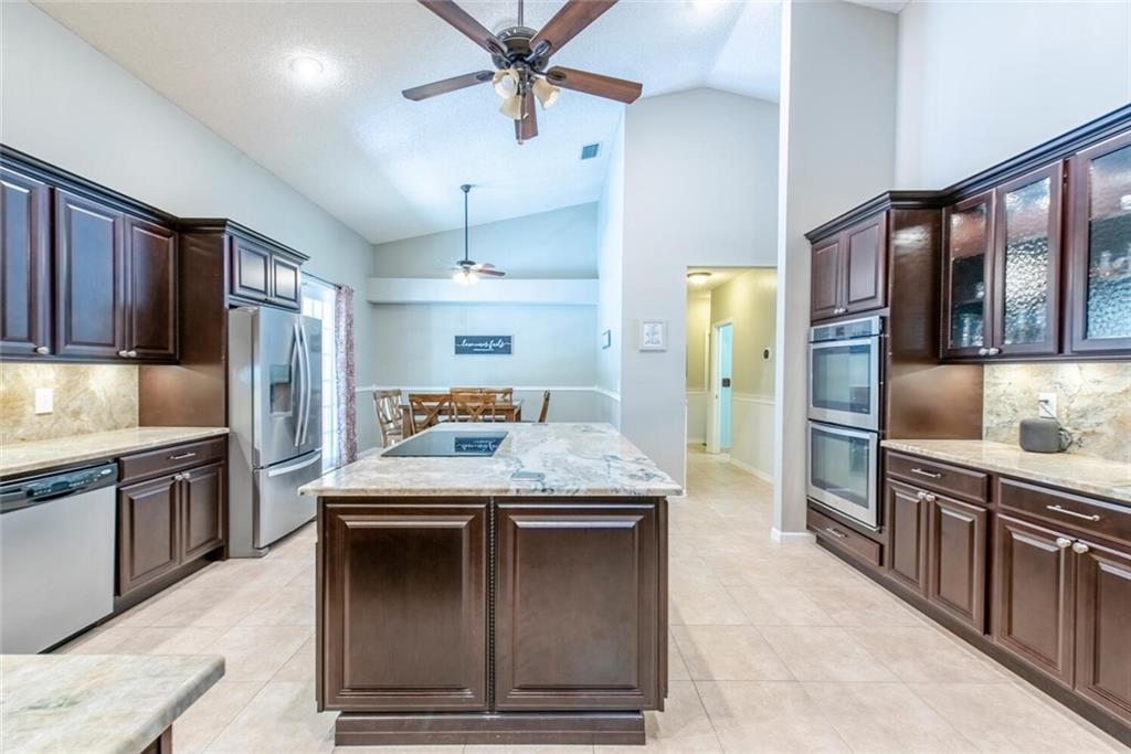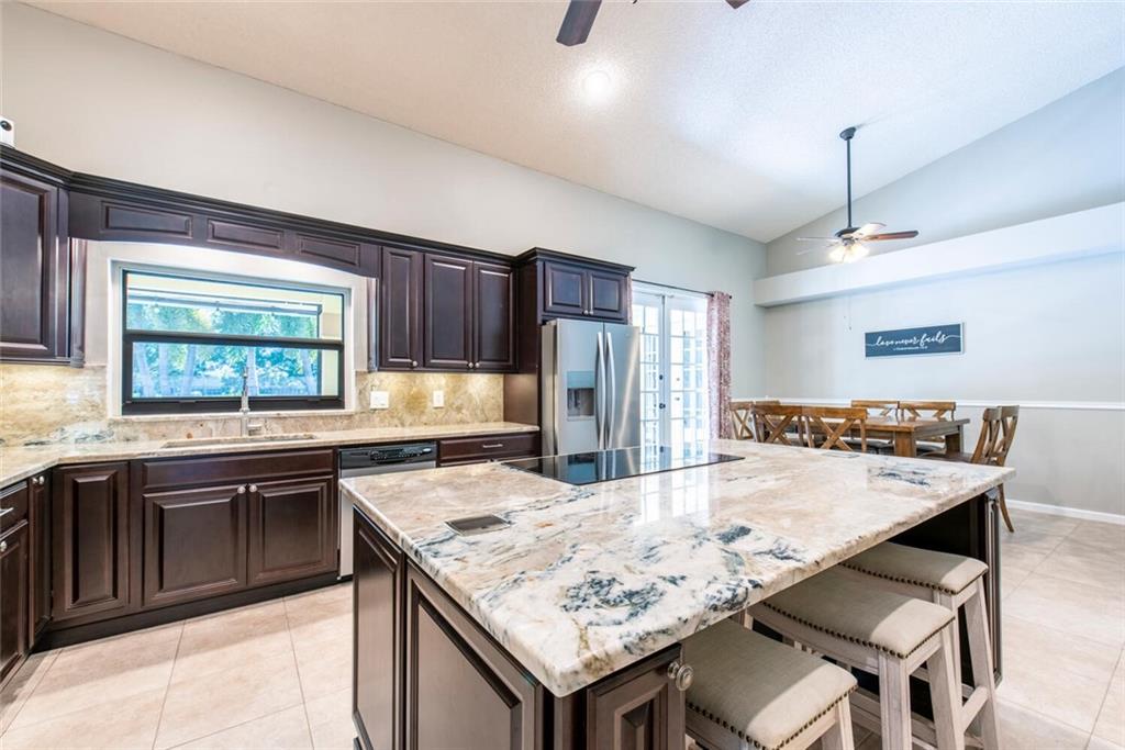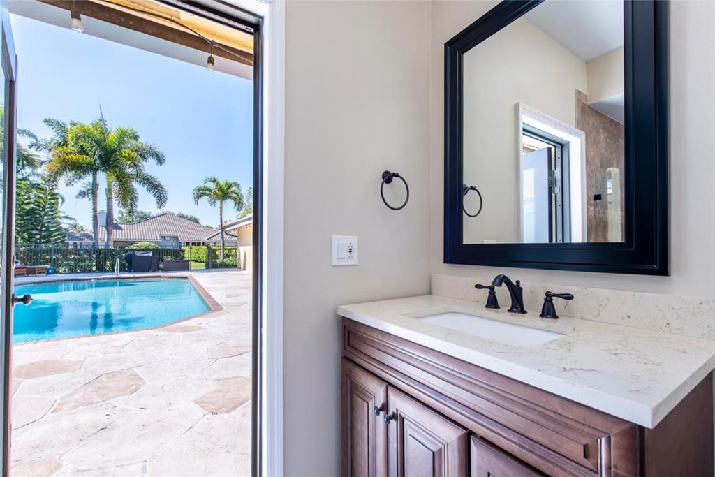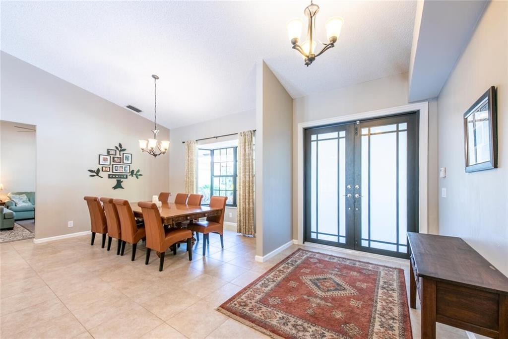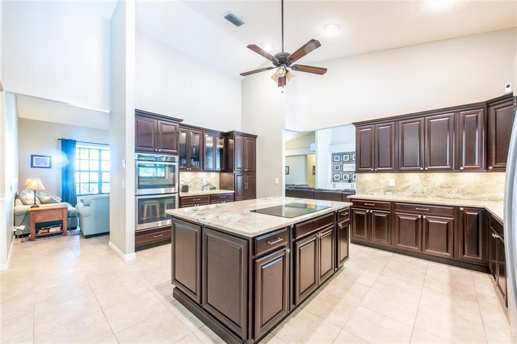 Enjoy the beautiful views of CypressHead Lake from the front door & porch of this magnificent .91 acre estate! Outstanding features incl: 18" stone-look tile throughout; stunning floor-to ceiling cut coral fireplace; cathedral ceilings, French doors & bay window; exquisite kitchen w/custom, dark wood cabinets, stainless steel appliances including double ovens, beautiful quartzite counters & backsplash, huge center island w/breakfast bar & spacious breakfast nook; separate his & her master baths; updated bathrooms throughout; all impact windows--French doors w/hurricane panels; huge screen-enclosed lanai & two cabana baths; & amazing, oversized pool. So much yard for fun--walk across the street to fish--or within minutes walk to all Cypresshead incredible amenities. This house is a 10!