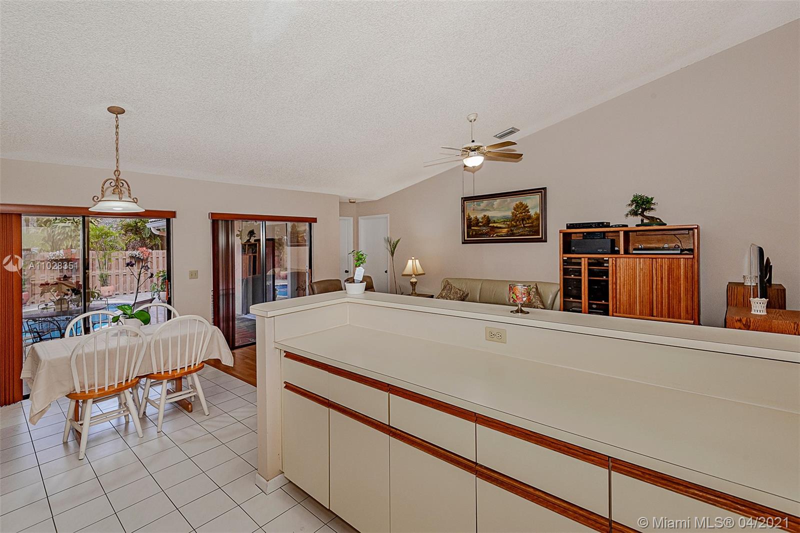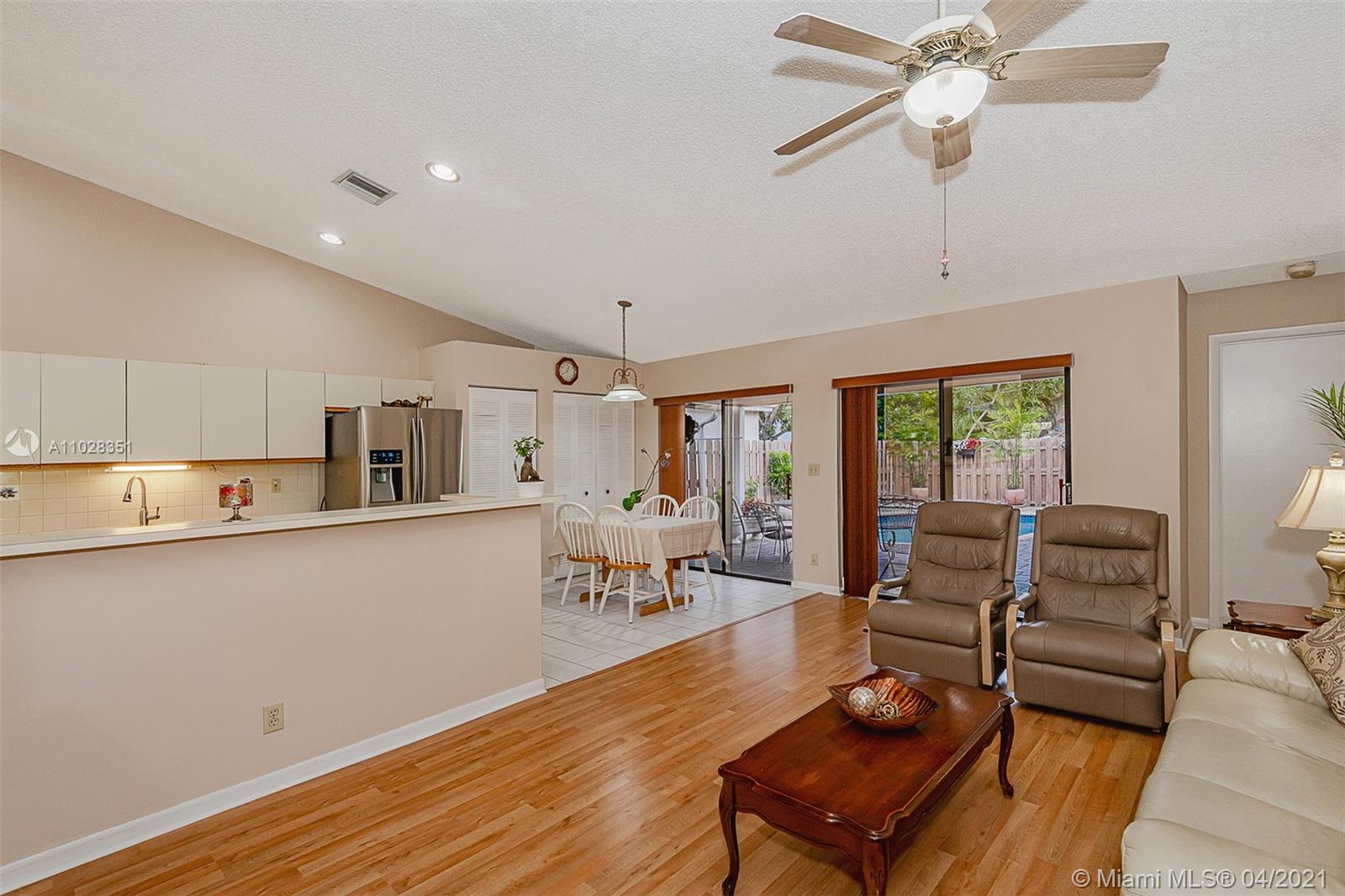 WOW!!! THIS IS IT, WELL MAINTAINED 4 BEDROOM 2 BATH POOL HOME IN CORAL SPRINGS, UNDER $ 400K, NO HOA. CENTRALLY LOCATED IN HEART OF DOWNTOWN AREA, OPEN ENTRY TO LIVING ROOM WITH VAULTED CEILINGS, BAY WINDOW IN LIVING ROOM, LARGE EAT-IN KITCHEN WITH STAINLESS STEEL APPLIANCES, CERAMIC TILES IN LIVING ROOM, LARGE FAMILY ROOM OVERLOOKING THE BEAUTIFUL POOL PATIO AREA, LAMINATED FLOOR IN FAMILY ROOM, SPLIT BEDROOM PLAN. LARGE MASTER SUITE WITH LARGE CLOSET, TUB IN MASTER BATH, INSIDE UTILITY ROOM, TWO CAR GARAGE, WINDOWS ARE IMPACT GLASS AND SLIDING DOORS HAVE ACCORDION SHUTTERS, BACKYARD IS FULLY FENCED, WALKING DISTANCE TO PARKS, SCHOOLS, FINE WINE AND DINING, AND THE WALK BACKYARD IS FULLY FENCED. YARD IS BEAUTIFULLY MAINTAINED. DO NOT MISS THIS GREAT BUY.
