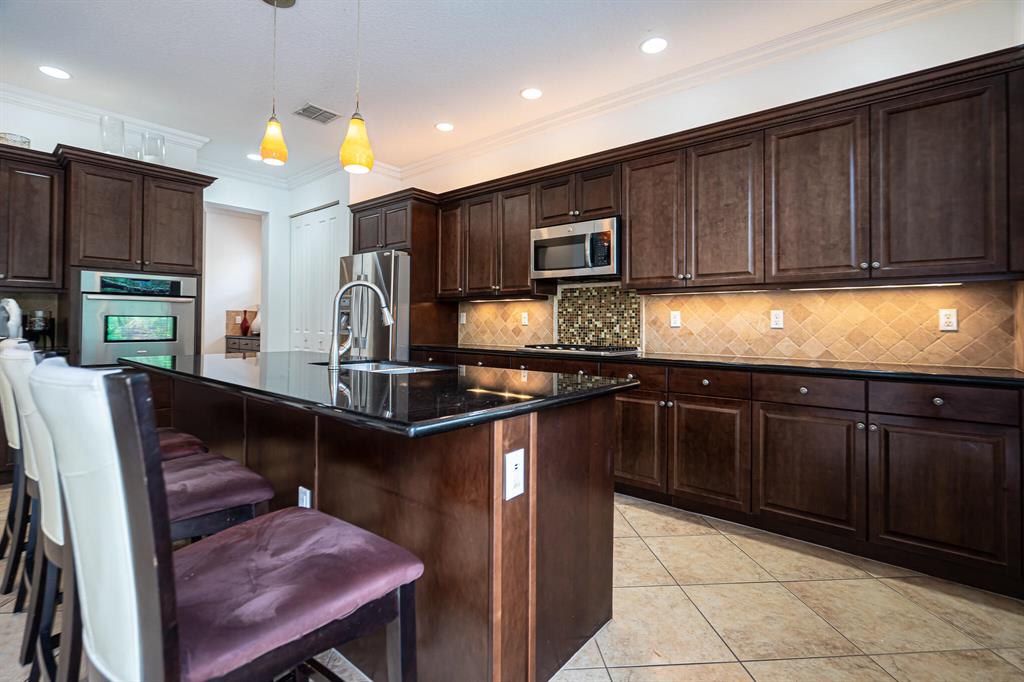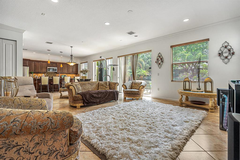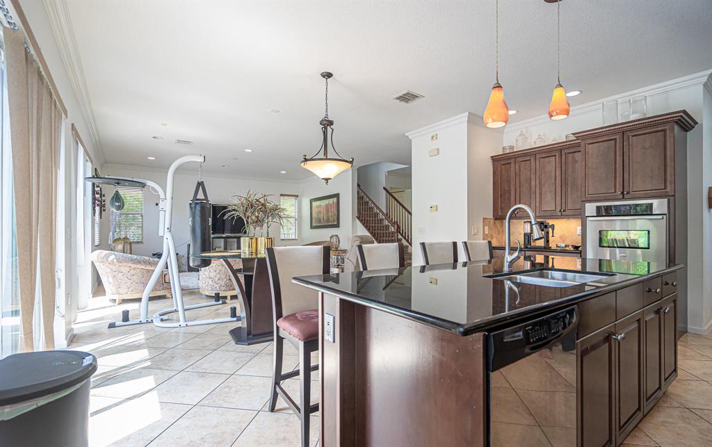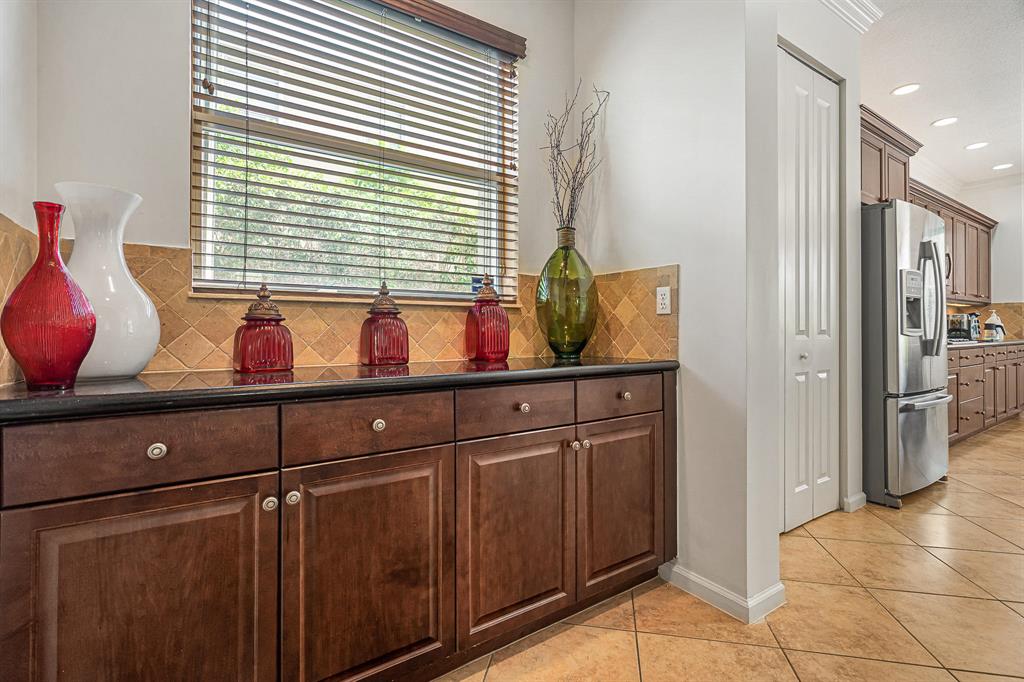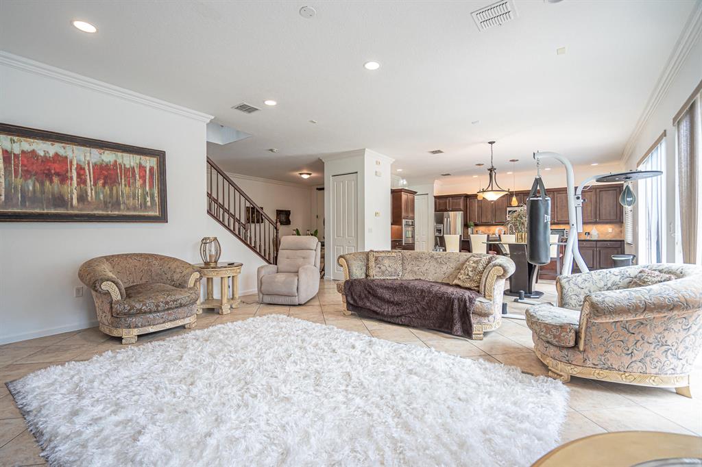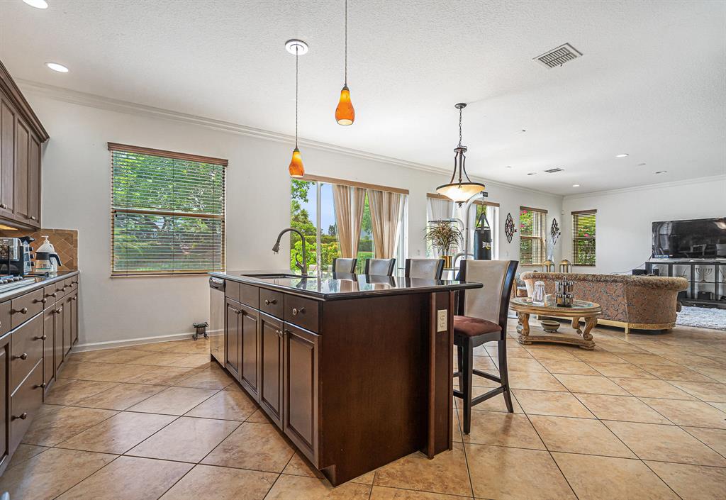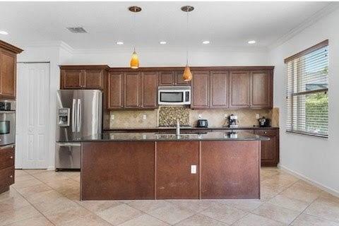 Wonderful 4 bed, 3 ba with loft Waterfront Pool Home in Portosol! Prepare to be dazzled by the spacious layout and stunning pool view as you enter the foyer. The high-end crown molding continues downstairs. The formal dining room is elegant and includes a butler's pantry, making it ideal for entertaining and hosting dinner parties