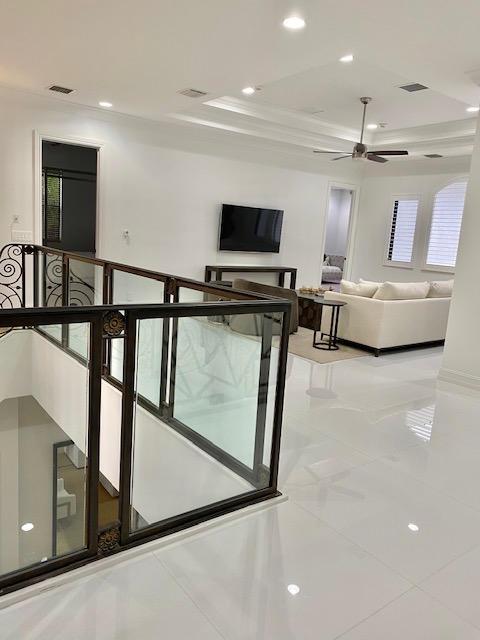 New Impact Windows!! Overlooking long panoramic water views this newly reimagined 6 bedrooms, 8 bathrooms, with more than 6,200 sq ft of living area offers gallery like spaces that are both expansive & intimate. A glass marble staircase connect the two levels. The upper level houses 5 bedrooms & entertaining spaces. The home's main level features three garage spaces, marble flooring, designer kitchen, multiple living areas, 2 bedrooms, & a 24 ft grand foyer. Sited on the longest lake view enjoy a salt water pool, entertaining lanai, new gas grill, full house generator, and whole house water system. The Oaks community offers top tennis facilities, fitness programs for all ages, Including exercise classes, private instructors, resort pool, onsite cafe, and basketball courts.
