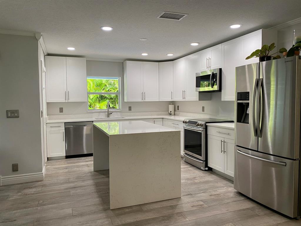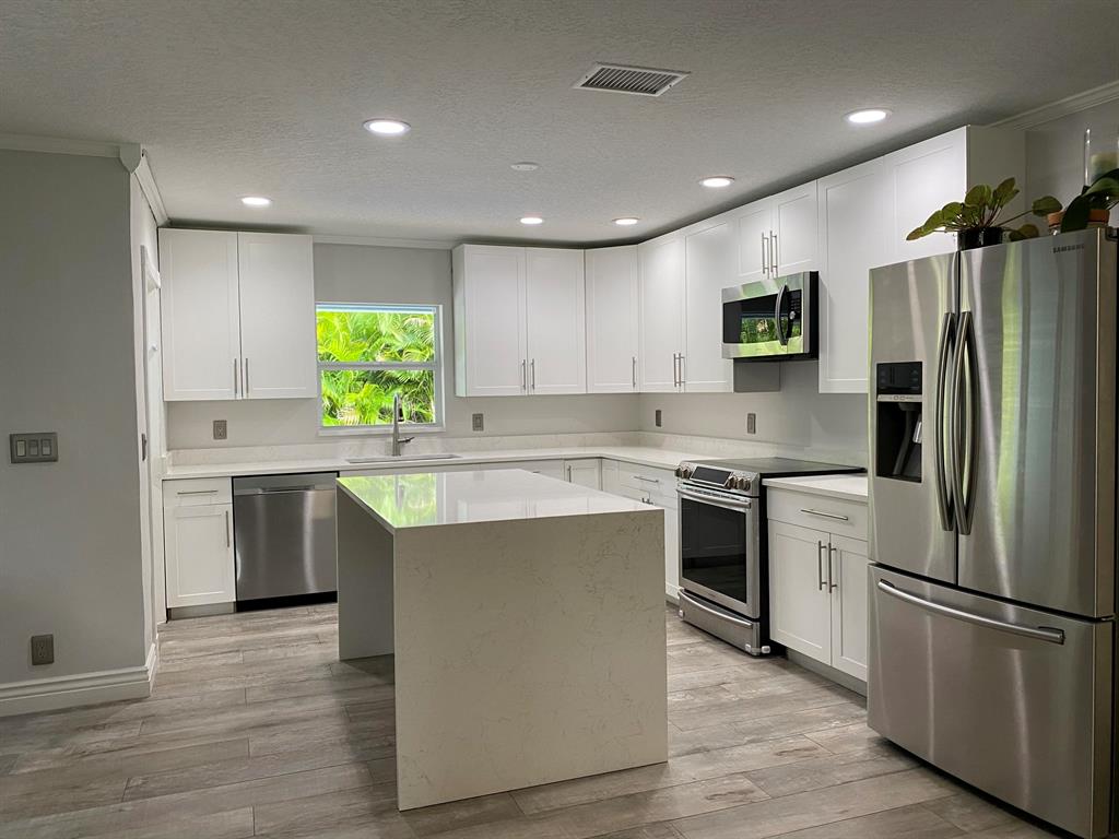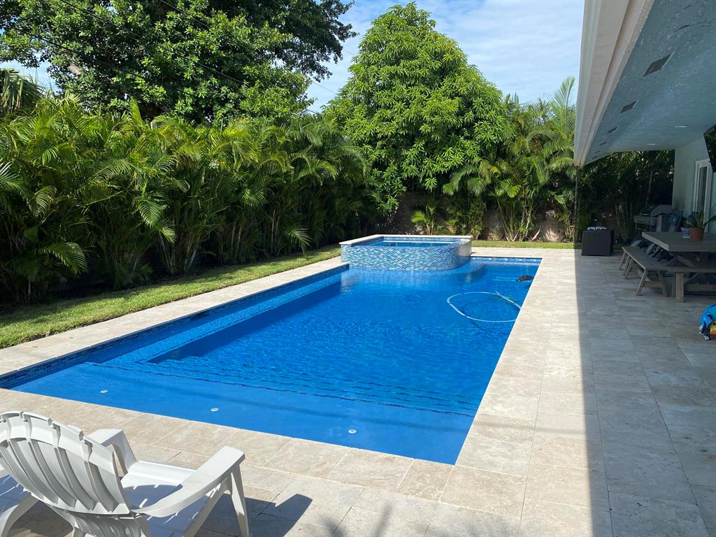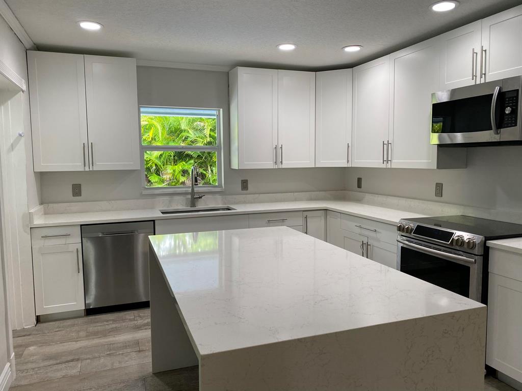 No HOA! This home won't last long, best value East of Federal. You aren't just buying a house, you are buying a lifestyle. Quiet street on cul de sac with million dollar homes. Spa inspired custom built saltwater pool with water features, wrap around bench, infinity edge hot tub with natural gas whole pool heater, all app controlled. Three large bedrooms, with an open floor plan. Third bathroom includes a separate entrance to the pool. Brand new kitchen with soft close cabinets & quartz countertops. New roof, new floors, new hurricane windows & sliders. Newer A/C & water heater. Two car garage workshop/laundry with A/C. Located a few minutes from Downtown Delray, the beach, Whole Foods, Trader Joe's & Fresh Market.