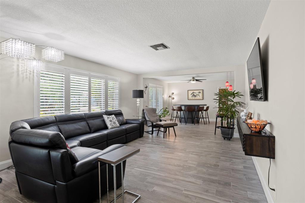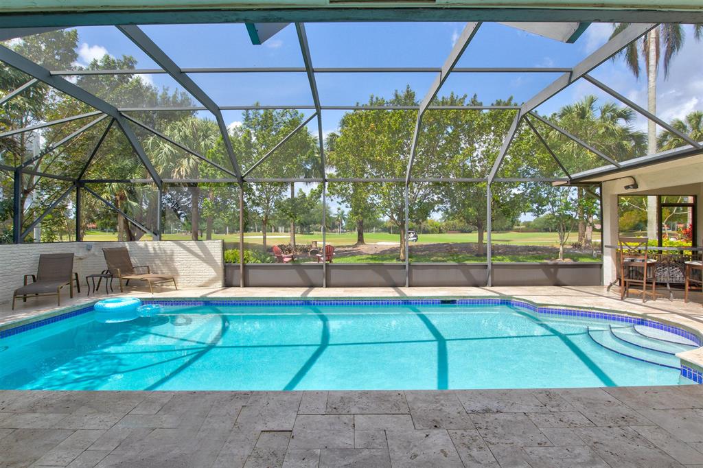 Spectacular 4 bedroom / 3.5 bath /2 car garage home in highly desirable Jacaranda Golf Country Club. Home is located on the East course where you 'll enjoy breathtaking sunsets onthe 15th fairway. Open floor plan for entertaining centered around a large kitchen area and fireplace. Floor layout highlights; fabulous views of golf course and pool area from both masterbedrooms, kitchen, dining, and family room. Features include new tile throughout, impact doors and windows, plantation shutters, travertine pool deck with cabana bath, central vacuumsystem, large pantry / laundry room with counter and double sink, walk in closets, new 2020 a/c handler and upgraded ductwork. Family oriented neighborhood, near shopping, gyms andall major highways.