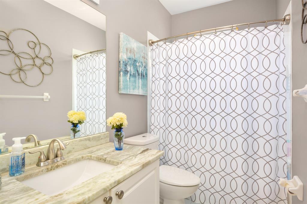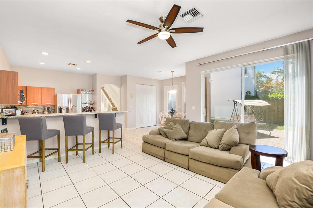 NO SHOWINGS until Open House Sunday 04/18/21. This gated community is Florida at its finest! A spacious feeling greets you as you enter into the living room with formal dining room. The kitchen features beautiful marble countertops & a custom bar area complete with a built-in wine glass rack and 24'' wine cooler. The marble breakfast bar makes a convenient spot for a quick meal or doing homework. Spin around on your stool and watch TV in the adjoining family room, join in the family fun or just watch the sunset over the lake. 3 bedrooms and 3 full bathrooms complete the indoor living space with one bedroom and one full bathroom downstairs. Step outside the breakfast nook onto a large patio with a covered BBQ area, under a shade tree for breezy summer nights because the house sits at the