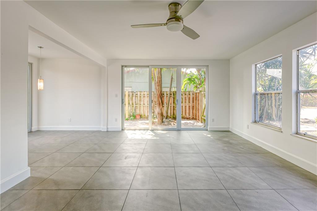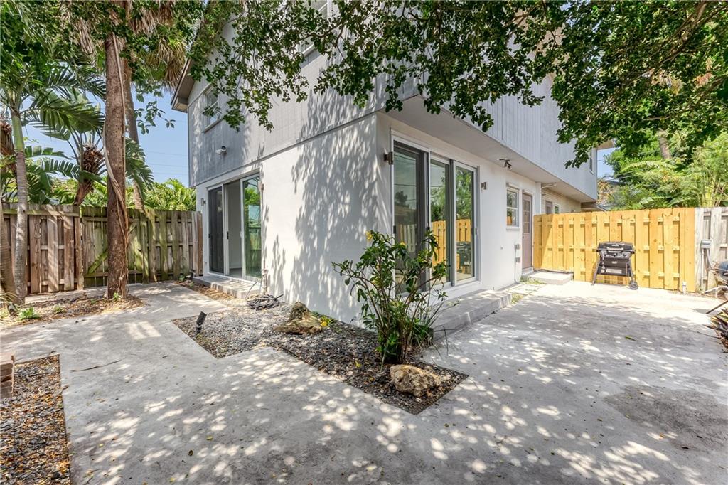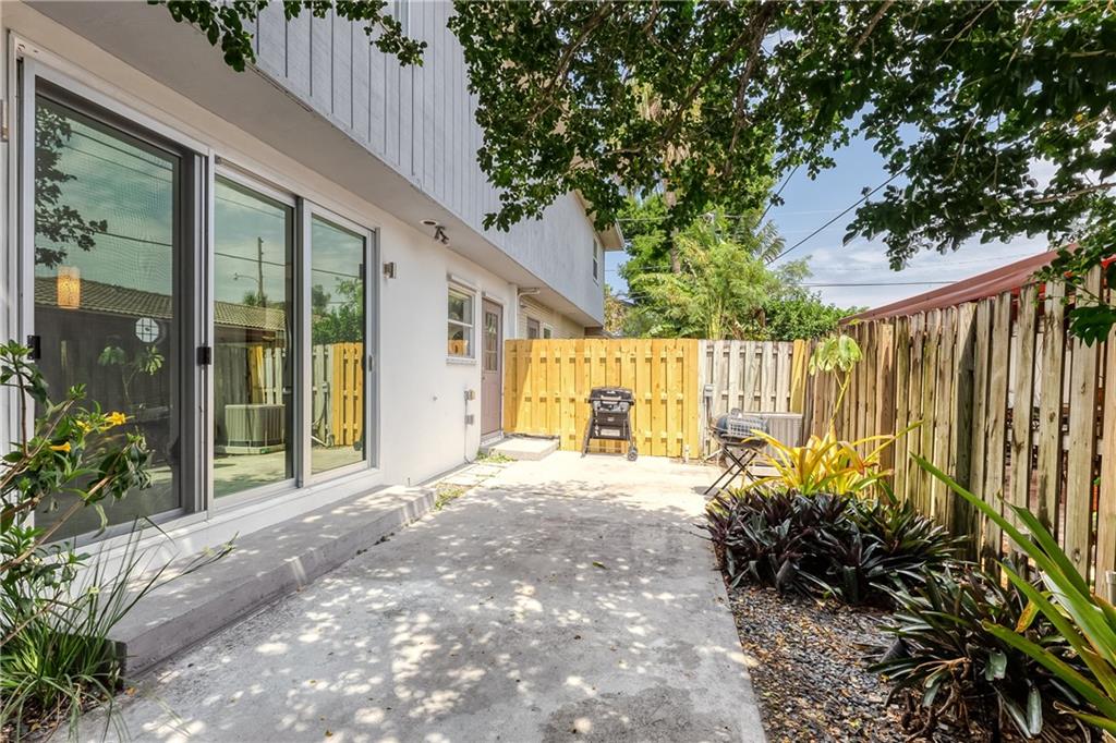 Just renovated sleek & contemporary townhome, gorgeous new gray tile floors downstairs! This end unit has lots of light in the living areas. Impact slider doors open into the generous fenced private patio / yard. Brand new kitchen & bathrooms, all new wiring in the unit -- all work done with permits. New appliances. New impact windows & back door coming soon as well. New A/C system & hot water heater. Three bedrooms /one bath upstairs. Laundry area & half bath off the kitchen. This is a fee simple townhouse, just one attached unit -- no HOA fees - each owner responsible for their own roof, insurance, etc. The building does have a termite warranty in place. Are you looking for that pied-a-terre / crash pad here in Fort La-dee-da / close to Wilton Manors? THIS IS IT!!! SWEET SPOT!