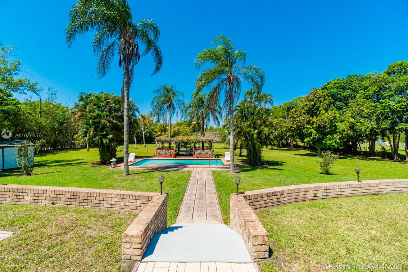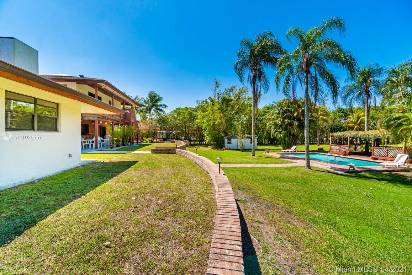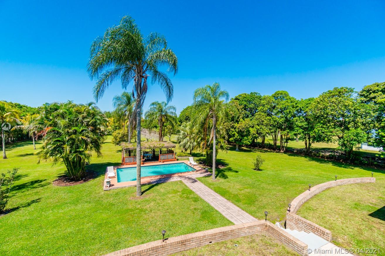 Private gates lead you into this impressive estate situated in Country Club Ranches. Original owner, custom-built ABOVE BASE FLOOD ELEVATION. with a circular driveway nestled on 2.5 acres, the main home with 3865 sq. ft. features volume ceilings, skylights, solar panels, wood-burning fireplace, showcasing 4 bedrooms, 3 full baths, one of the bathrooms is a full cabana bath, plus two additional bonus rooms home office-library-den. Spacious backyard made for entertainment includes tropical fruit trees, Master bedroom with stunning views from the 2nd story deck of the grounds, pool, and gazebo. Gives you the feeling of country living with city convenience only 5 minutes from I-75, 20 minutes from Fort Lauderdale, and 30 minutes from Miami. No HOA fees.