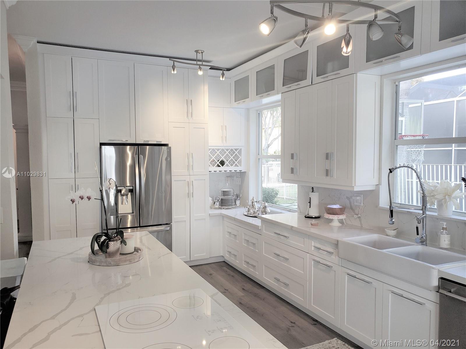 SHARMING 4/3 HOME WITH A 2-CAR GARAGE. HOUSE SITS ON A PRIVATE STREET THAT ENDS AT A CUL-DE-SAC & AN PROPERTY SITS ON AN OVERSIZED LOT WITH A LAKE ON THE BACK. COMMUNITY IS "MONTECARLOS / MONARCH LAKES" GORGEOUS NEW OVERSIZED KITCHEN CABINETS AND LARGE KITCHEN ISLAND WITH QUARTZ TOPS. PORCELAIN TILE FLOORS ON THIS FIRST FLOOR AND BATHROOMS & ELEGANT PVC LAMINATED WOOD FLOORS OVER STAIRS AND THE SECOND FLOOR. THE BACKYARD IS AN ENTERTAINERS PARADISE, PROPERTY HAS AN OPEN LAYOUT INSIDE AND OUT. COMMUNITY HAS ACCESS TO: (tennis, basketball, playground, BBQ and picnic area). Close to shopping malls, restaurants, Memorial Hospital, A+ rated schools. Easy Access to I-75 & Turnpike.