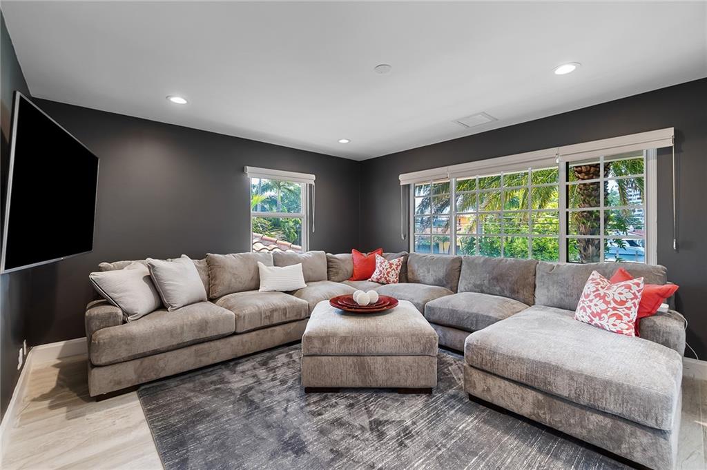 Beautifully remodeled home located on an oversized waterfront lot in the prestigious secure & guarded Seven Isles community. This home offers a bright and open floor-plan, large open kitchen features include double oven, Island with cooktop & hood and eat in area! Separate formal dining room, 3 bedrooms on first floor, one currently used as home office, master suite on second floor with huge closet, French doors to a private roof top terrace, and a spa like master bathroom. Additional en-suite bedroom on second floor. An oversized great room with double set of French doors opening to a fabulous covered patio, stunning pool area including an outdoor summer kitchen with a new 100ft dock/seawall with a 12000 lb boat lift!! Lushly landscaped for privacy with Pool and water views thru-out home!