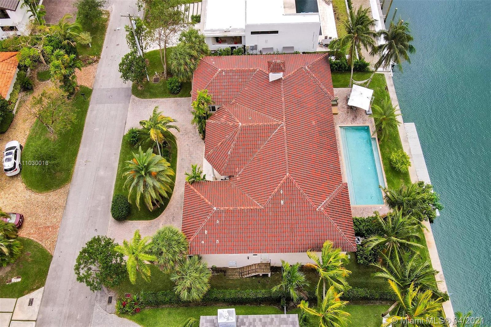 STUNNING 2-story waterfront with amazing SUNSET VIEW in a exclusive guard gated at Coral Gables By The Sea.Enjoy the the fabulous split floor plan with Master Bedroom suite 1st floor and all 4 others bedrooms on the 2nd all wood floors.Spacious open kitchen with granite tops and top of the line Appliances.Entertain your guests or simply relax & enjoy the breathtaking serene protected waterfront views and pool from the covered patio.Two covered garage 2 cars each.Two large Storage Rooms,one of each side of the house.Paved circular driveway & 2X2cg.Seawall and dock.Solar energy paper work ready APROVED.Mango tree(best).Spa hot tub.