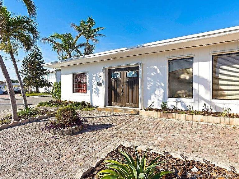 VERY GRAND MID-CENTURY MODERN RANCH ACROSS THE STREET FROM THE BAY ON TREASURE ISLAND IN NORTH BAY VILLAGE! This house is located in a PRIVATE ISLAND. It's located 5 minutes away from all the beautiful Miami Beaches. You can find a large grocery store within a walking distance and all the facilities that you need. This spacious 5 bedroom home is located on corner lot and features a fabulous floor plan & 1950's architecture with large open light-filled living spaces, formal dining room, high ceilings, a beautiful kitchen with lots of storage & cabinets, recently updated appliances, and a beautiful master bedroom overlooking the homes gorgeous pool & private patio.