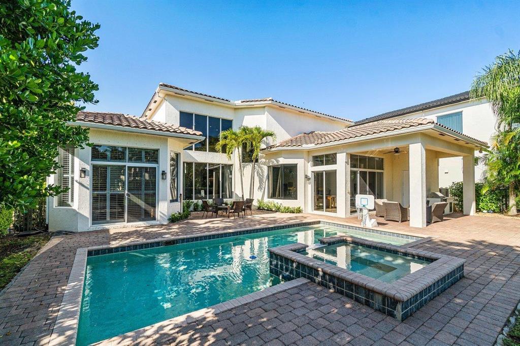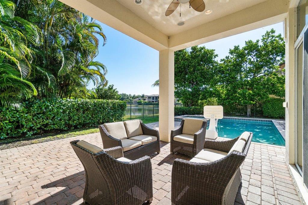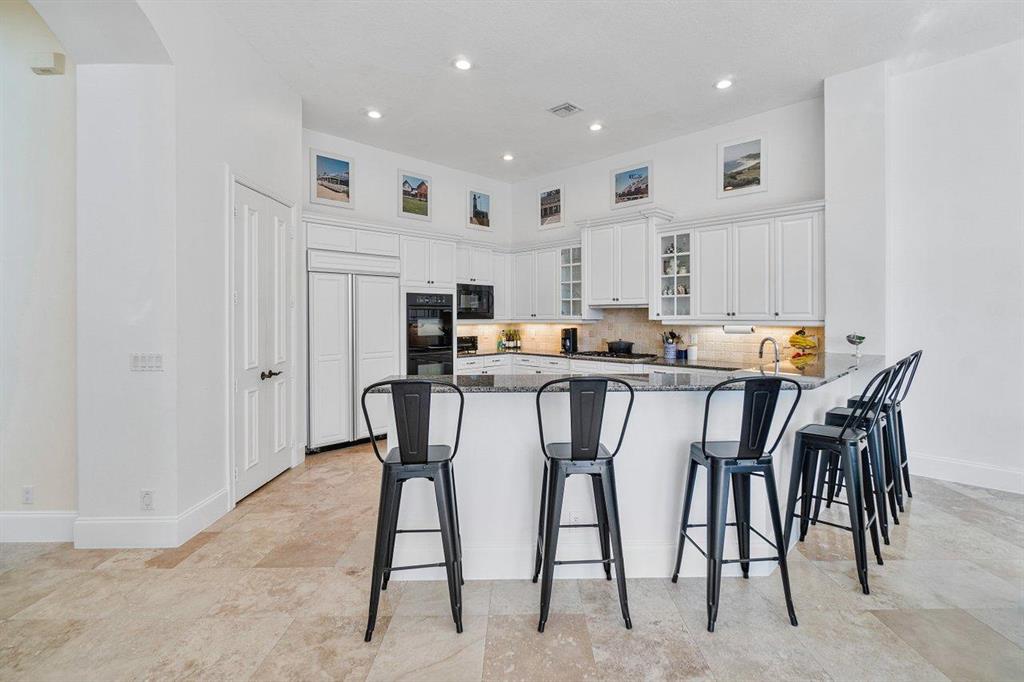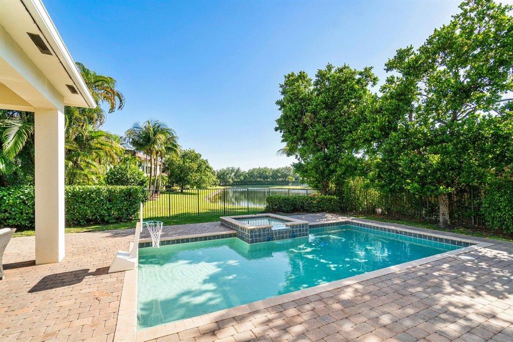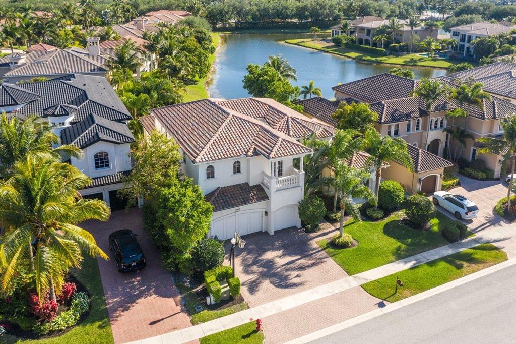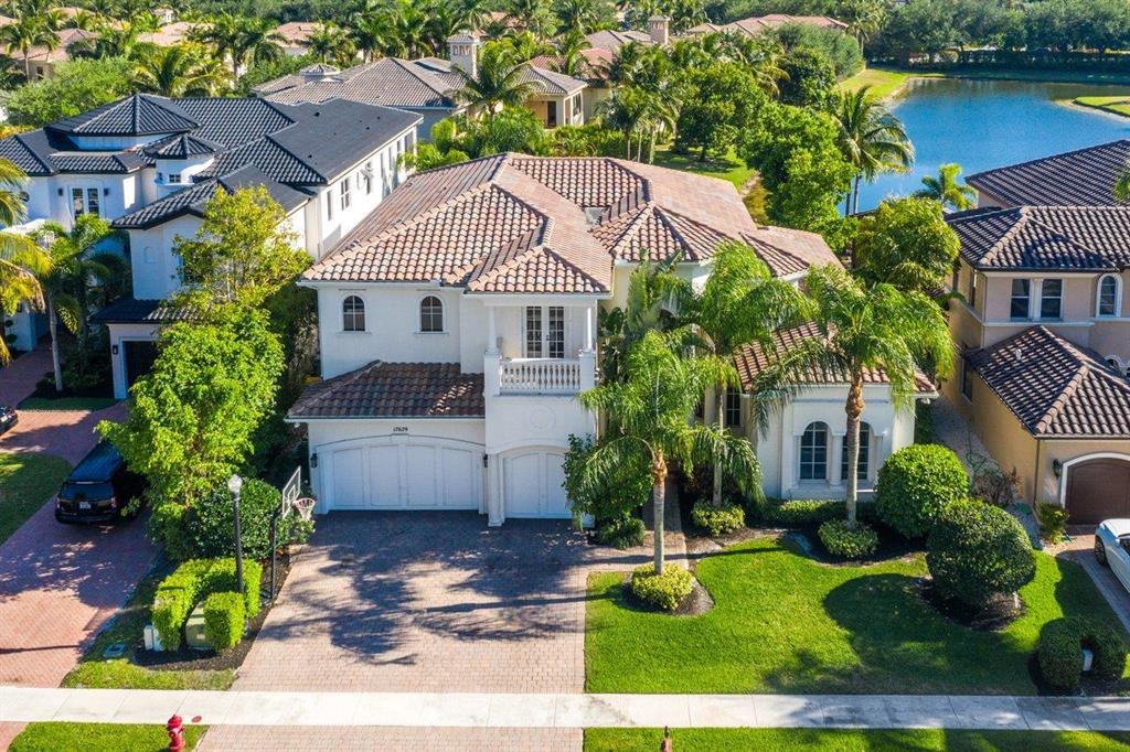 This custom Burgundy model boasts over 4,800 living square feet including 5 bedrooms, 5 full and two half baths including cabana bath and powder room, an office, loft, and a gorgeous south facing lakefront lot. This move in ready home welcomes you with its soaring ceilings, an open floor plan, sun drenched rooms, white gourmet chef's kitchen with granite countertops and opens to a spacious family room overlooking the expansive backyard with pool, spa and summer kitchen perfect for year round enjoyment and entertaining. Timeless millwork, tray ceilings, plantation shutters and marble flooring on the main floor add to the elegance of this home. An expansive private master suite located on the main level with his & her closets