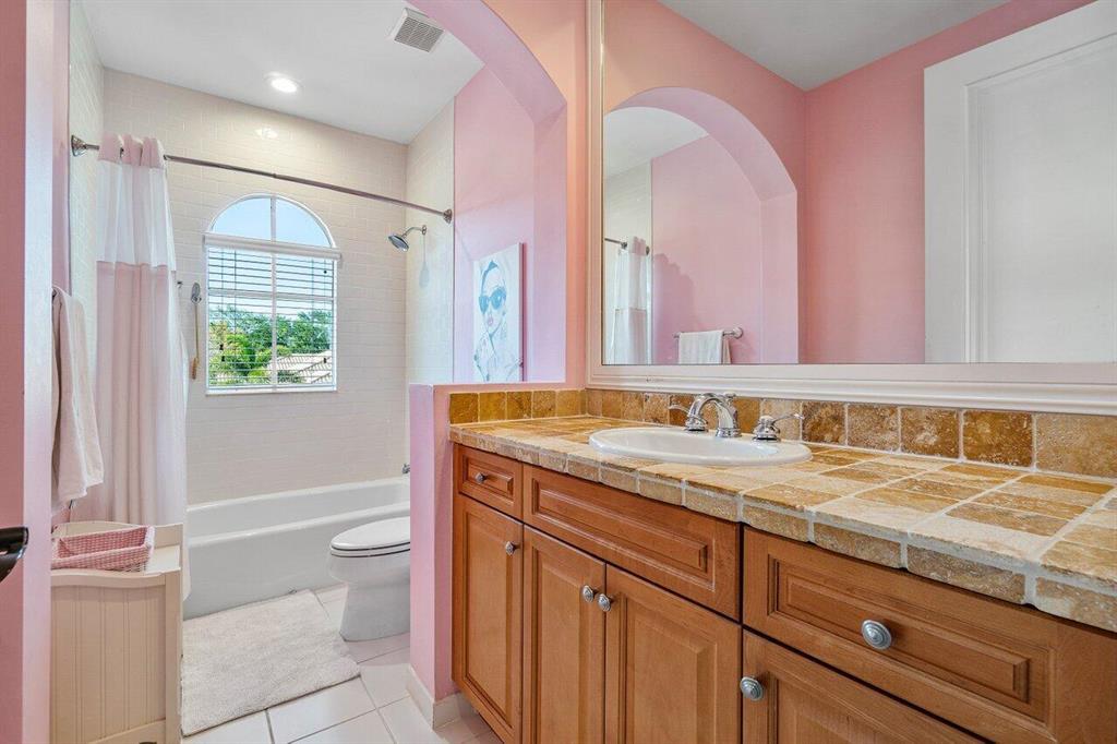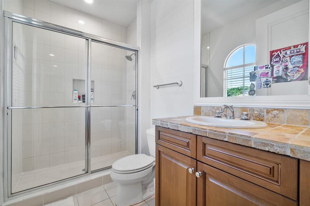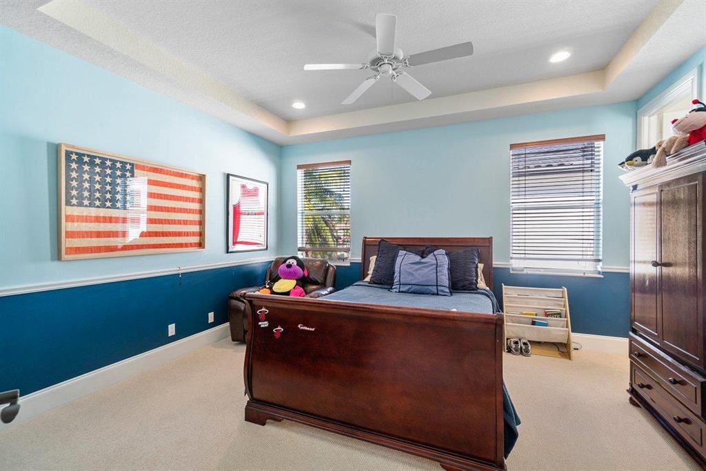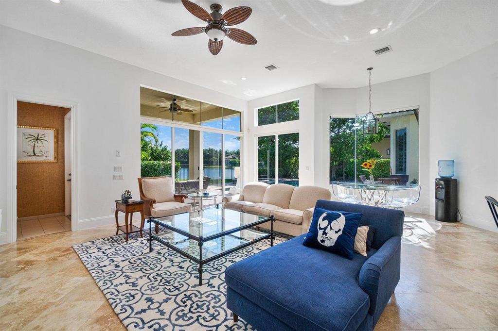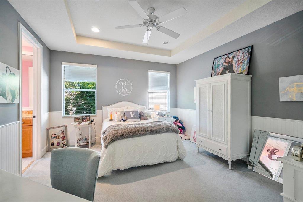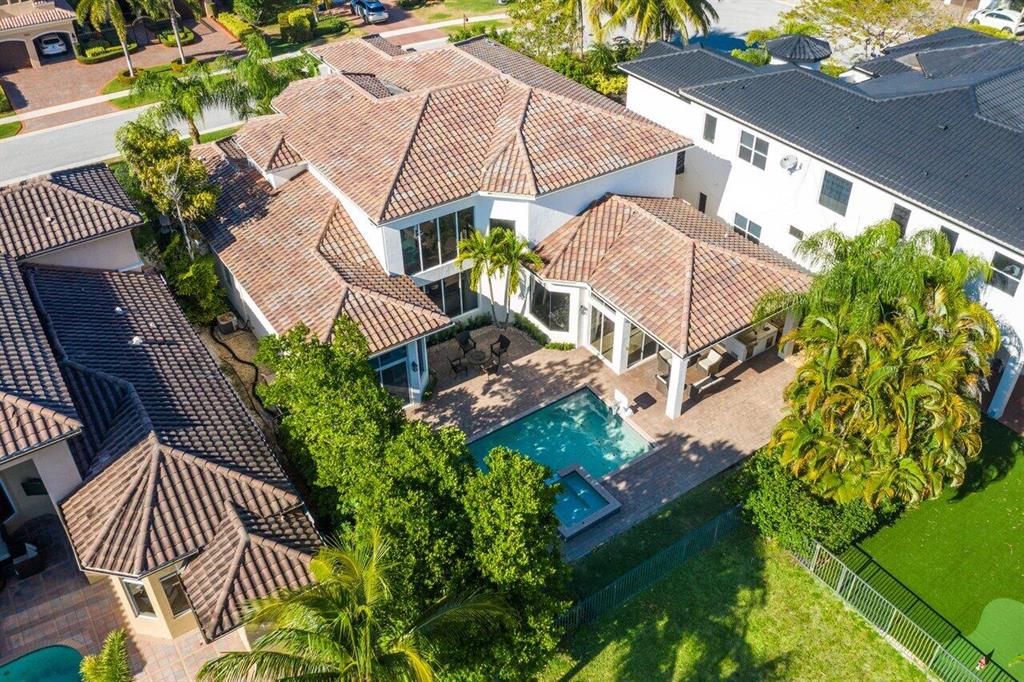 This custom Burgundy model boasts over 4,800 living square feet including 5 bedrooms, 5 full and two half baths including cabana bath and powder room, an office, loft, and a gorgeous south facing lakefront lot. This move in ready home welcomes you with its soaring ceilings, an open floor plan, sun drenched rooms, white gourmet chef's kitchen with granite countertops and opens to a spacious family room overlooking the expansive backyard with pool, spa and summer kitchen perfect for year round enjoyment and entertaining. Timeless millwork, tray ceilings, plantation shutters and marble flooring on the main floor add to the elegance of this home. An expansive private master suite located on the main level with his & her closets