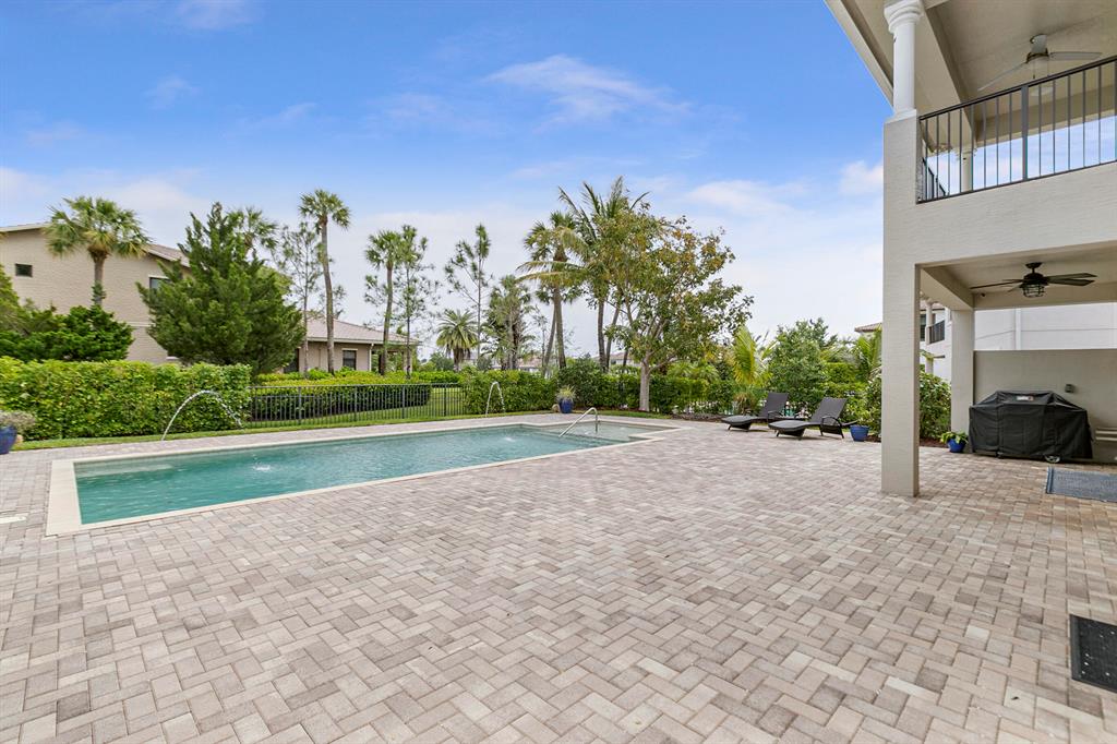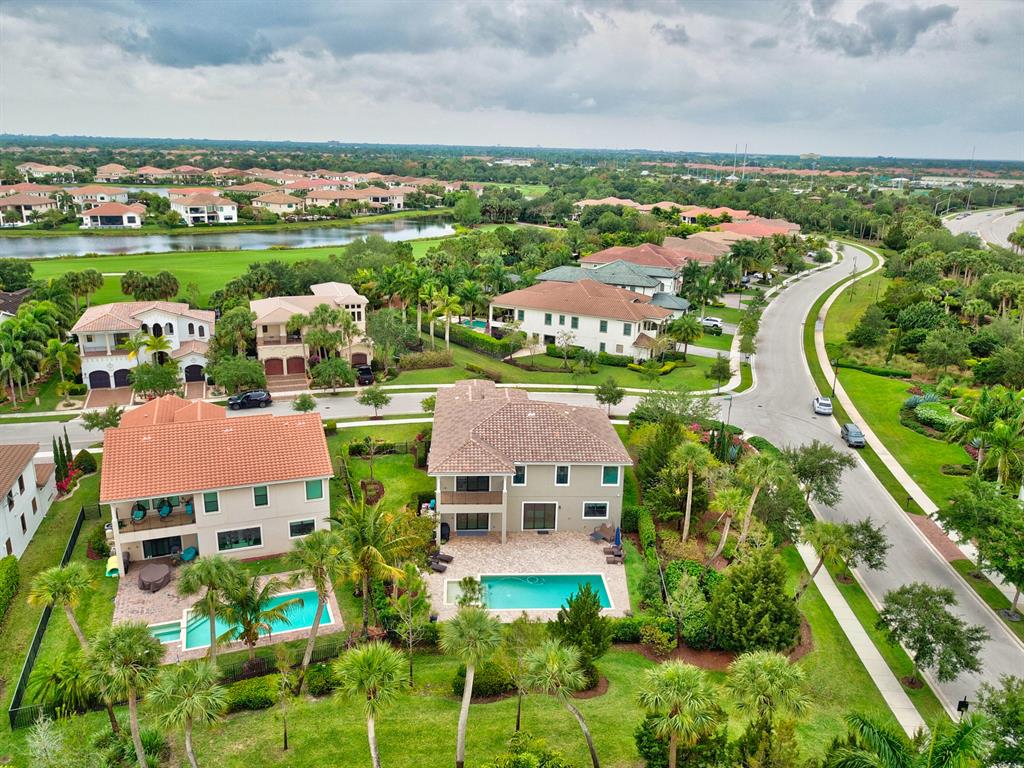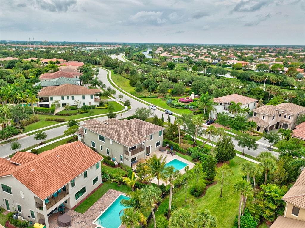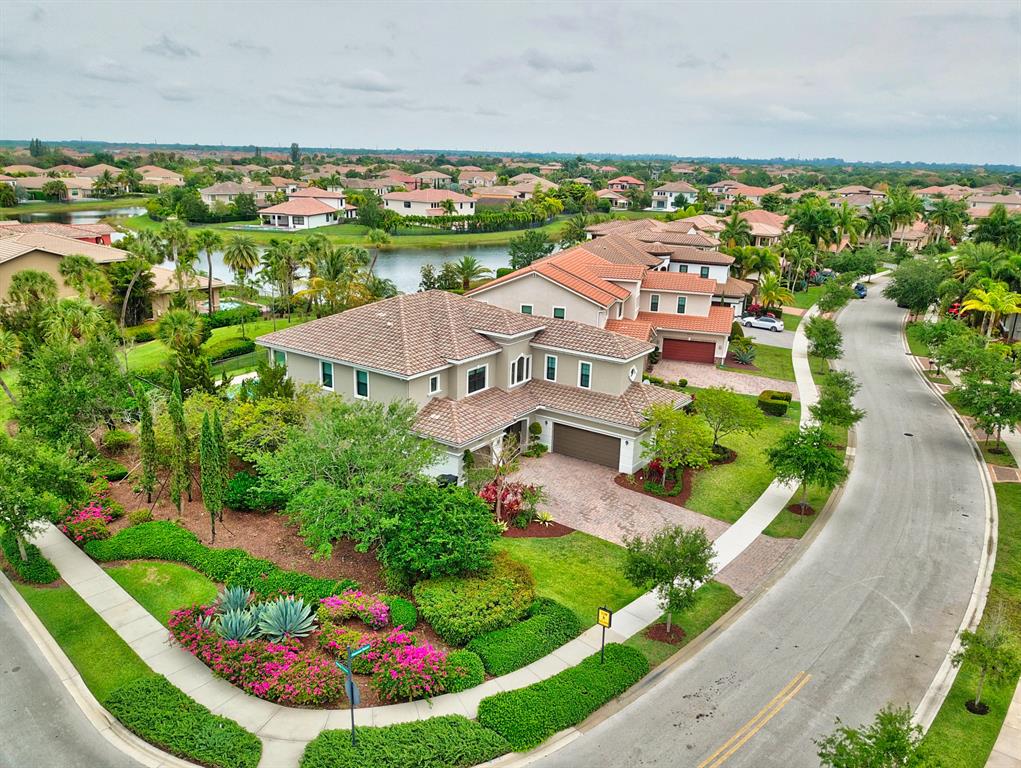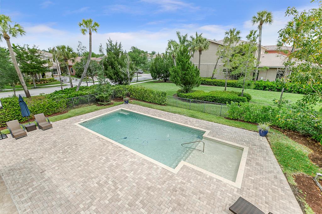 Expanded Bolano model with pool on a large corner lot with lake views and 5 Bedrooms/4.5 Bathrooms + bonus room and 3 car garage. Beautiful dream kitchen with white quartz countertops/off-white cabinetry, oversized island, double oven, built-in Kitchen aid refrigerator and Bosch dishwasher. Marble floors downstairs and wood on the staircase and throughout the second floor. Carpet in the bedrooms and bonus room. Customized built-in bar and built-ins in the living room, bonus room, guest bedroom and master suite. Outfitted walk-in closets in the master bedroom and guest bedrooms. Surround sound inside and out, upgraded exterior lighting.