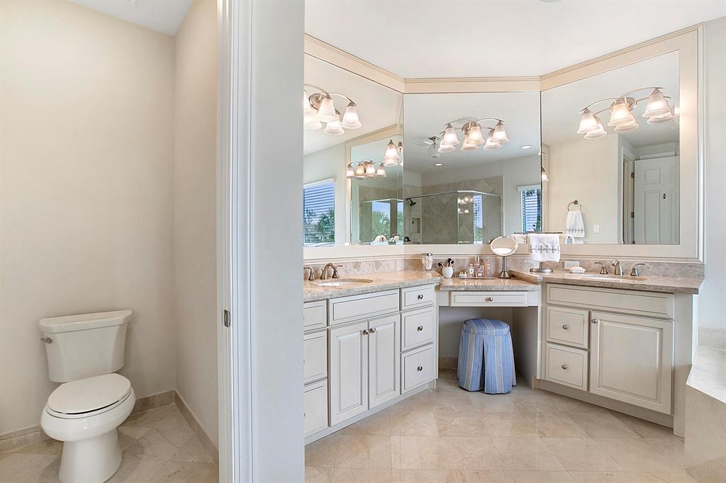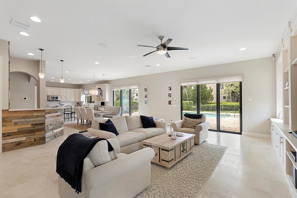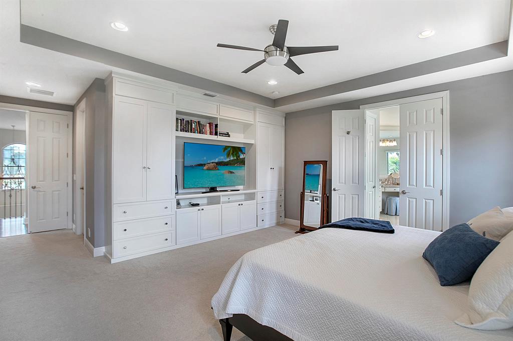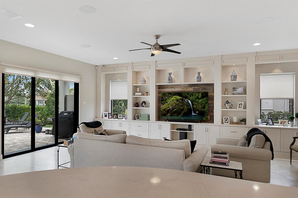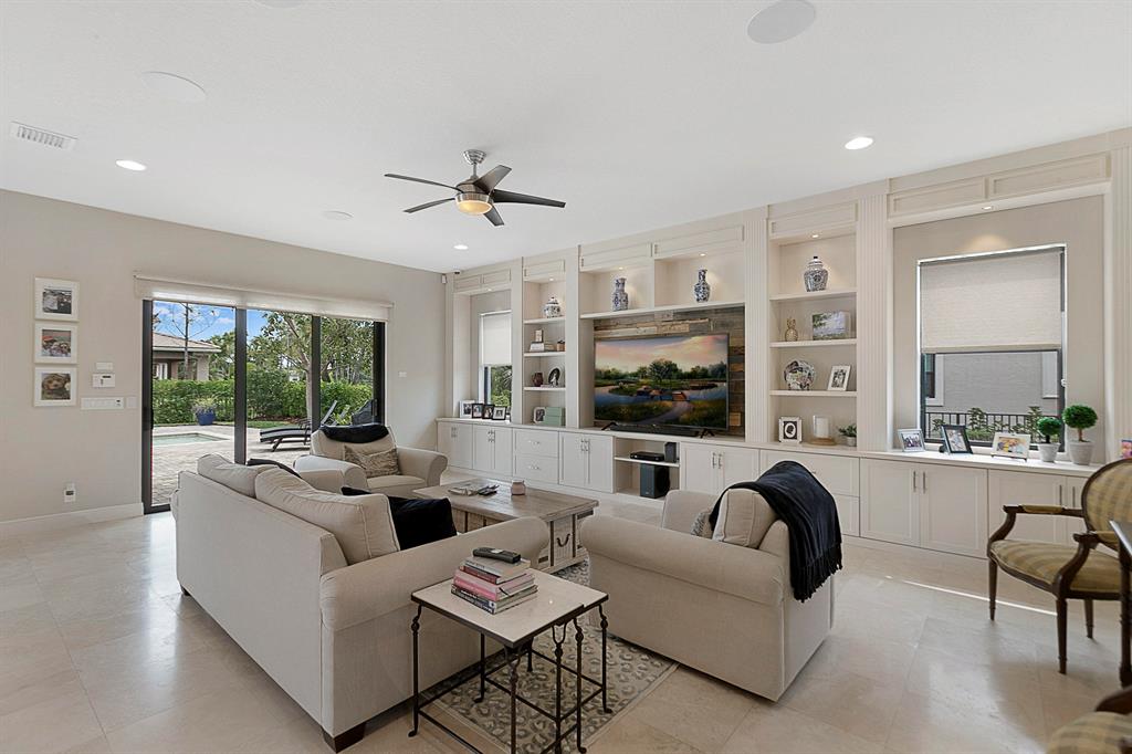 Expanded Bolano model with pool on a large corner lot with lake views and 5 Bedrooms/4.5 Bathrooms + bonus room and 3 car garage. Beautiful dream kitchen with white quartz countertops/off-white cabinetry, oversized island, double oven, built-in Kitchen aid refrigerator and Bosch dishwasher. Marble floors downstairs and wood on the staircase and throughout the second floor. Carpet in the bedrooms and bonus room. Customized built-in bar and built-ins in the living room, bonus room, guest bedroom and master suite. Outfitted walk-in closets in the master bedroom and guest bedrooms. Surround sound inside and out, upgraded exterior lighting.