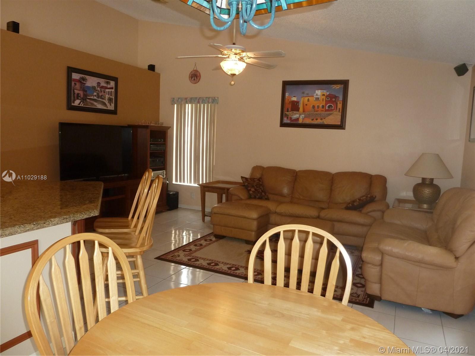 TRILOGY DESIRABLE NEIGHBORHOOD IN MIRAMAR THIS VERY WELL KEEP HOUSE 3 BEDS, 2 FULL BATHS, 2 CAR GARAGE AND POOL. OPEN FLOOR PLAN WITH VAULTED CEILING. REMODELED KITCHEN, GRANITE COUNTER TOP AND TOP OF THE LINE APPLIANCES, BREAKFAST AREA, A/C 2017, ROOF 2012, WATER HEATHER 2019, ACCORDION SHUTTERS, SPRINKLERS FROM WELL. KITCHEN OPEN TO THE FAMILY ROOM FACING THE COVERED PATIO, POOL AND GARDEN, PREWIRE SURROUND SYSTEM AND EXTERNAL PATIO SPEAKERS. ATTIC ANTHENA (OTA) GREAT LANDSCAPING, FENCED AND ONLY $60.00 HOA. RECENTLY PAINTED, TOTALY FENCED FOR MORE PRIVACY READY TO MOVE IN.