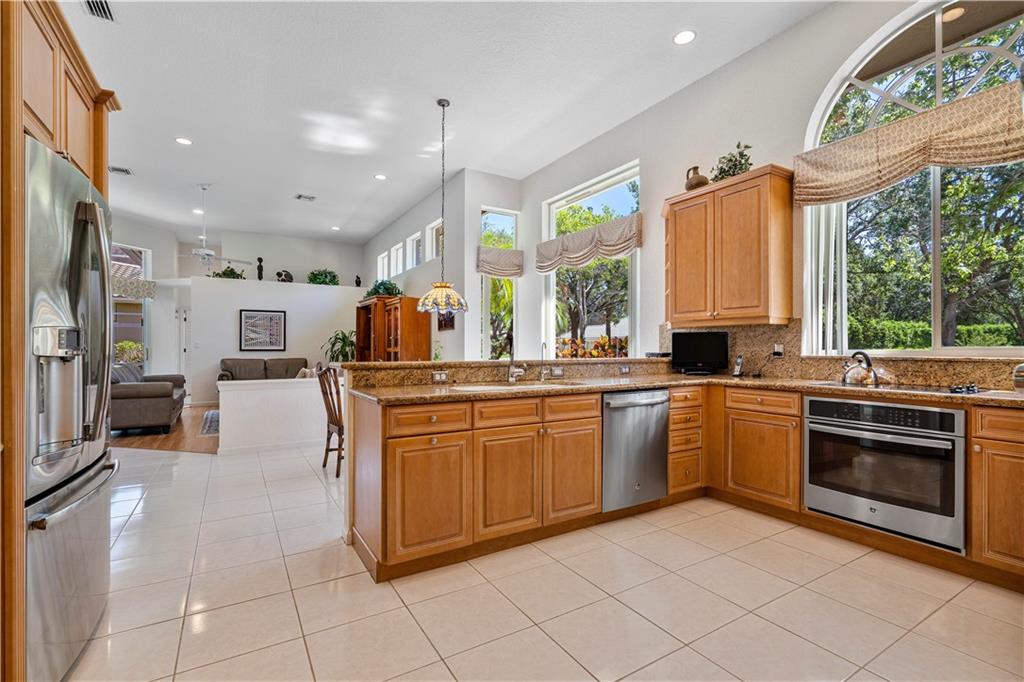 This checks all the boxes! Exceptional, custom, true five bedroom triple split floor plan. Lush landscape surrounds this corner lot with side load three car garage. Private dome screened pool and patio with covered space and perfect 15x30 pool. Enter through columned portico entry to contemporary architecture. High flat ceilings, large etched windows and transom glass brings in natural light to the entire home. Cooks dream kitchen with extensive counter, cabinet space and designer touches in custom kitchen. Triple pantry & large interior laundry room with more storage! Quality built & lovingly maintained; truly age defying. 24 hour guards at gate, new recreation center coming at no cost to homeowners. One mile to Sports Complex with Tennis and Aquatic Centers and more!