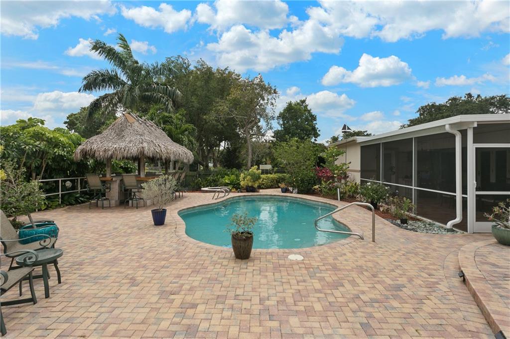 **SHOWINGS WILL BE FRI 4/30 ,11-3 ** DON'T MISS THIS BEAUTY! NEW ROOF, A/C, WASH/DRYER 2020. 7550 WATT GENERATOR. SEE ATTACHED FOR AMAZING LIST OF CUSTOM FEATURES, OUTDOOR PARADISE INCLUDES POOL & WATER VIEW FROM SCREENED & TILED PATIO FEATURING BUILT IN GLASS BLOCK JENNAIR BBQ AND 10' GRANITE BAR. LUSH LANDSCAPING TILED WET BAR TIKI HUT AND FIRE PIT, 9 CUSTOM FRENCH DOORS. THIS LIGHT AND BRIGHT HOME OFFERS TOP OF THE LINE SS APPLIANCES GRANITE, TUMBLE MARBLE BACKSPLASH AND CHERRY WOOD CABINETS. BATHROOMS HAVE BIRCH AND CHERRY WOOD VANITIES, AND GRANITE COUNTER TOPS. NEW ELECTRIC 220, FLOORING IS LUXURY PLANK SLATE, METICULOUSLY KEPT -PRIDE OF OWNERSHIP, 3RD BEDROOM CURRENTLY USED AS CUSTOM CLOSET BUT EASILY RETURNED TO 3RD BEDROOM (CREDIT AND ESTIMATE AVAILABLE) WON'T LAST