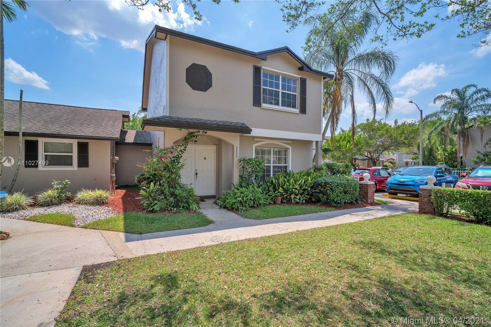 Beautiful and spacious 3 bedrooms and 2.5 baths corner unit townhouse located in the desired neighborhood of Colony Courts in Sunrise. This property boasts a wonderful open kitchen; tile floors downstairs and brand new vinyl floors upstairs. Spacious master bedroom, bathroom and walk-in closet. Lush landscape in front of the unit and throughout the community. Well kept home minutes from Sawgrass Mall and close to all major highways entertainment, restaurants, the BB&T Center, Sawgrass Mall and more. A pet friendly community with low HOA. Association covers exterior insurance, community pool and common areas. There is also plenty of guest parking right outside of the property for your guests.