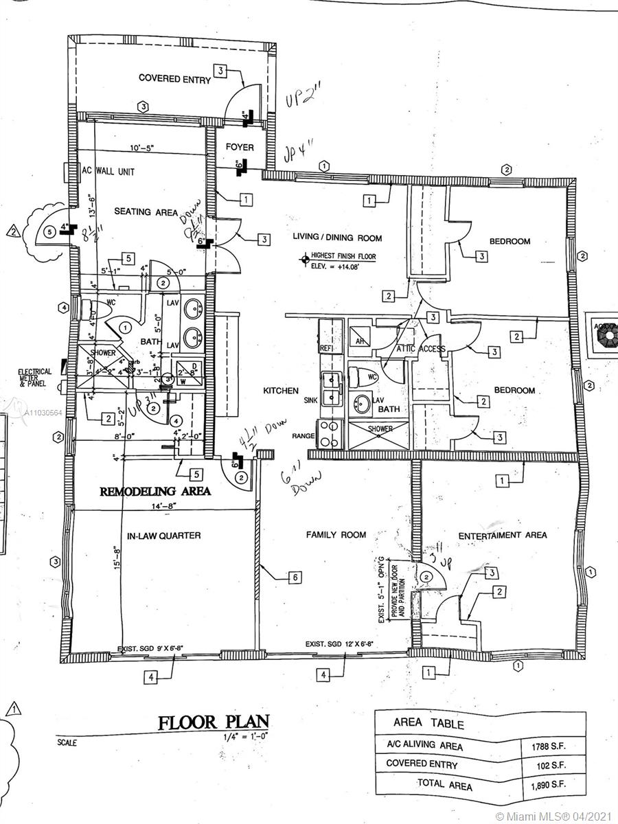 4 BEDROOMS, 2 BATHROOMS, WITH POOL, INCLUDES IN-LAW-QUARTERS WITH BEDROOM AND SEATING AREA AND NEWLY CONSTRUCTED BATHROOM. NEW ROOF IN 2021. NEW KITCHEN CABINETS WITH GRANITE COUNTER TOPS AND STAILESS STEEL APPLIANCES, CENTRAL A/C, IMPACT FRONT WINDOWS AND FRONT DOOR. ALL IMPROVEMENTS ARE REFLECTED IN THE CLOSED MASTER PERMIT. AWAITING UPDATE BY COUNTY APPRAISERS OFFICE TO REFLECT > ACTUAL LIVING AREA 1,788 SQ.FT.<, 4 BEDROOMS, 2 BATHROOMS. CIRCULAR DRIVEWAY, FENCED.