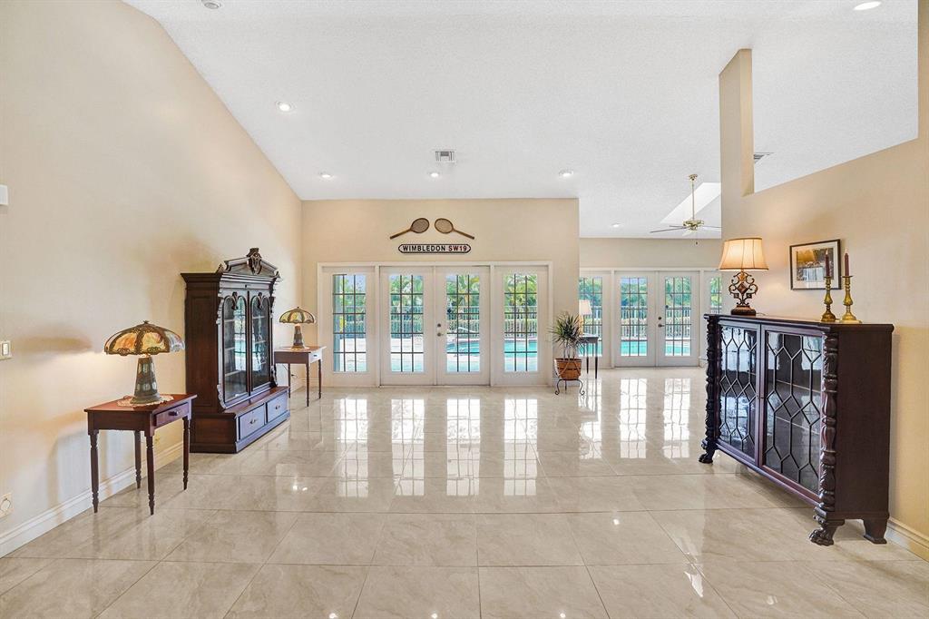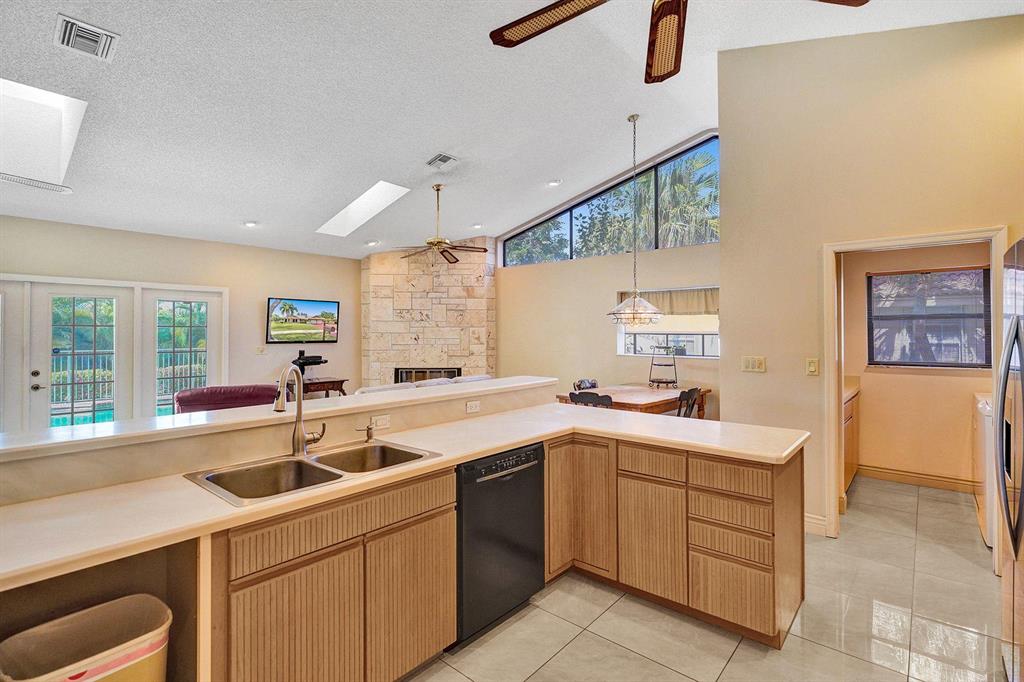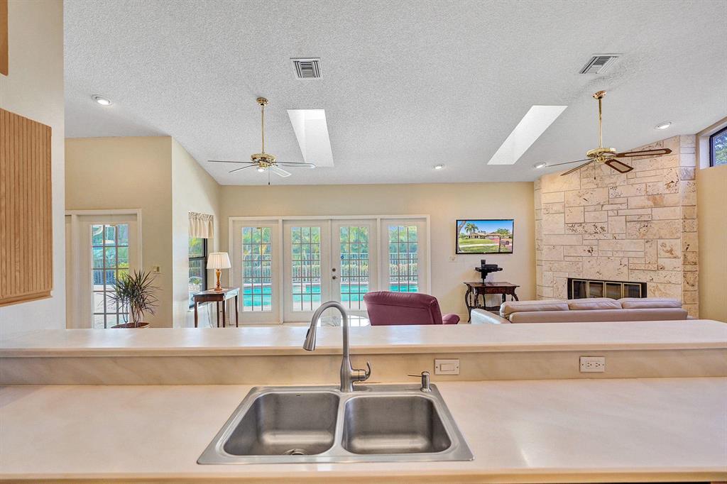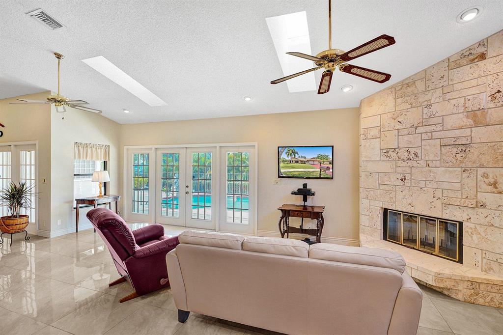 Stunning, spacious and meticulously cared for home in Central Boca's sought after Colonnade. Open & bright 3 bedroom plus den pool home. The exterior boasts lush landscaping. Gorgeous large custom tile throughout living area with bamboo flooring in bedrooms and hallways. French doors line the back dining & living areas. Living room has attractive coral fireplace & skylights. Oversized master closet. Den can easily be converted to 4th bedroom. Updated Cabana Bath. Butler's pantry next to kitchen. Colonnade has tennis, basketball, & playground in park setting. Walking distance to Spanish River High School, Omni Middle School, and St Andrews School.