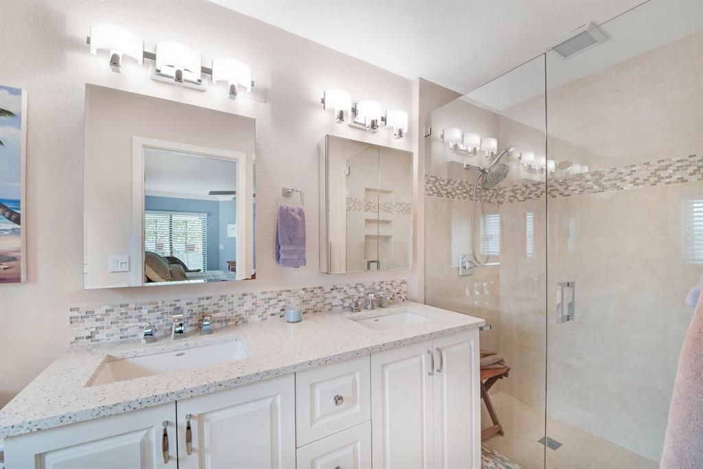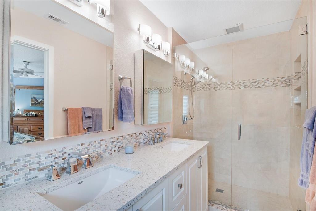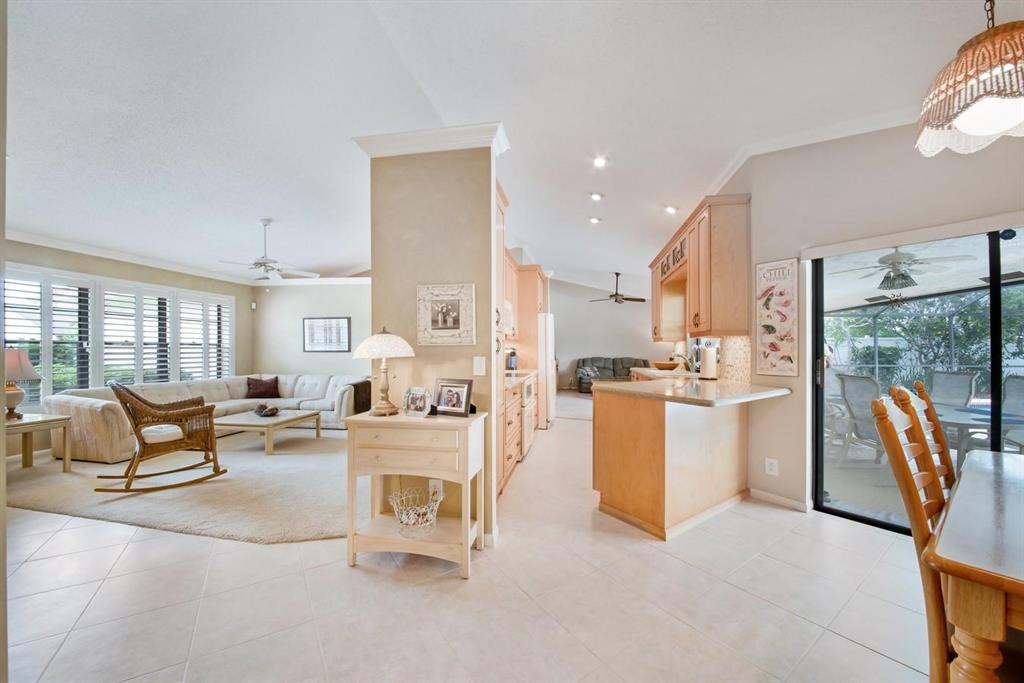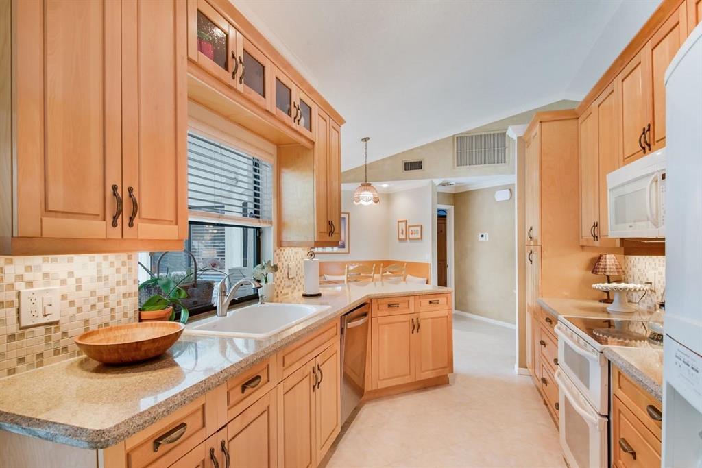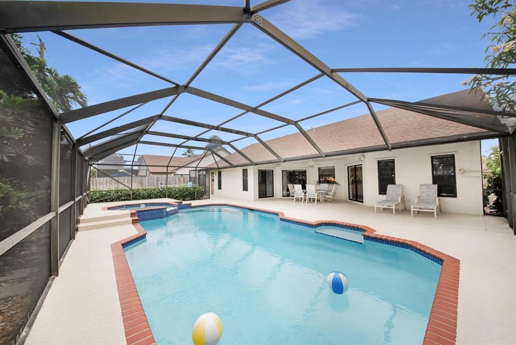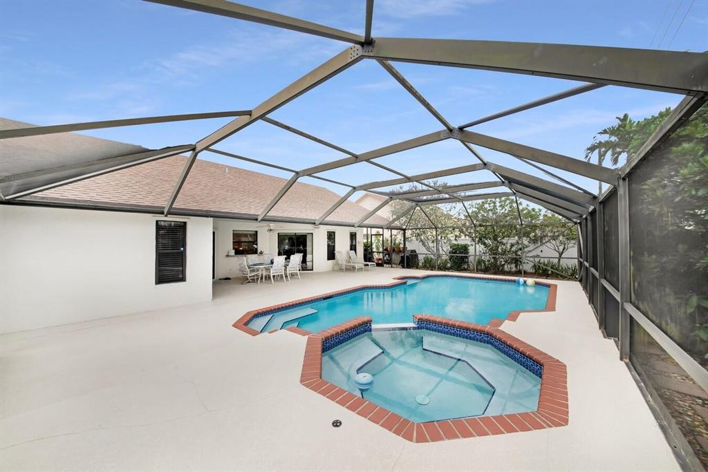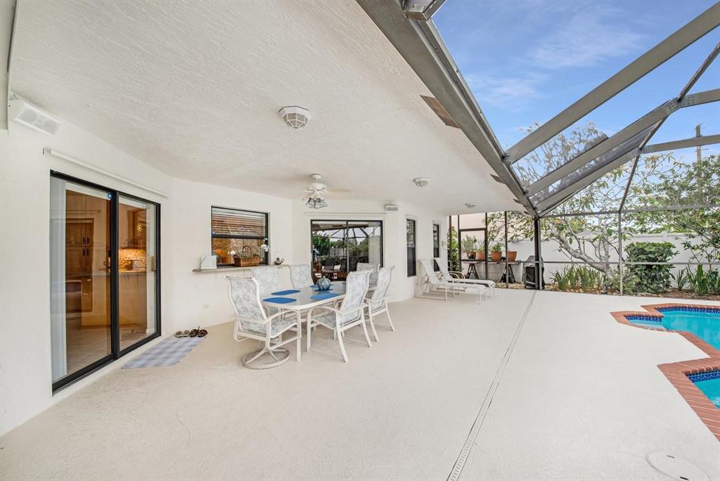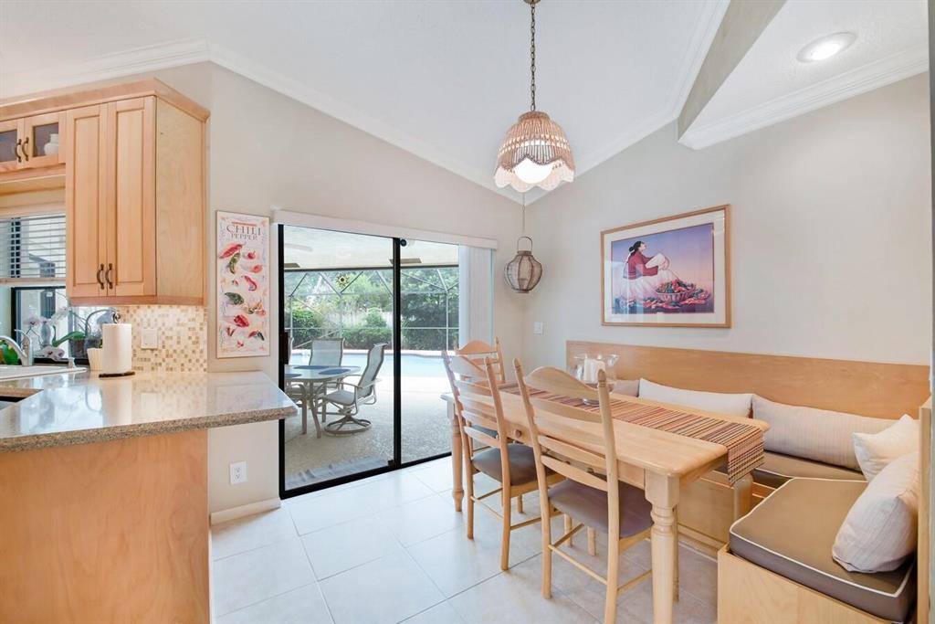 Experience the lifestyle you seek in Boca Fontana. From the moment you enter this stunning home you will notice the vaulted ceilings and the abundance of natural light. Entertain with style in the formal living and dining rooms or spend a casual afternoon in the family room or on the screen enclosed patio. Stunning chef's kitchen features cabinets with pull-outs, under cabinet lighting, Silestone countertops, tiled backsplash, pass through to patio, high hat lighting and a custom breakfast nook with storage. Master retreat with a slider to the patio, custom walk-in closet, double sinks with Quartz countertops and a walk-in shower. Enjoy quiet moments on your covered patio with outdoor speaker, a custom game pool (3 feet on sides and 5 feet in the middle), spa and screen enclosure.