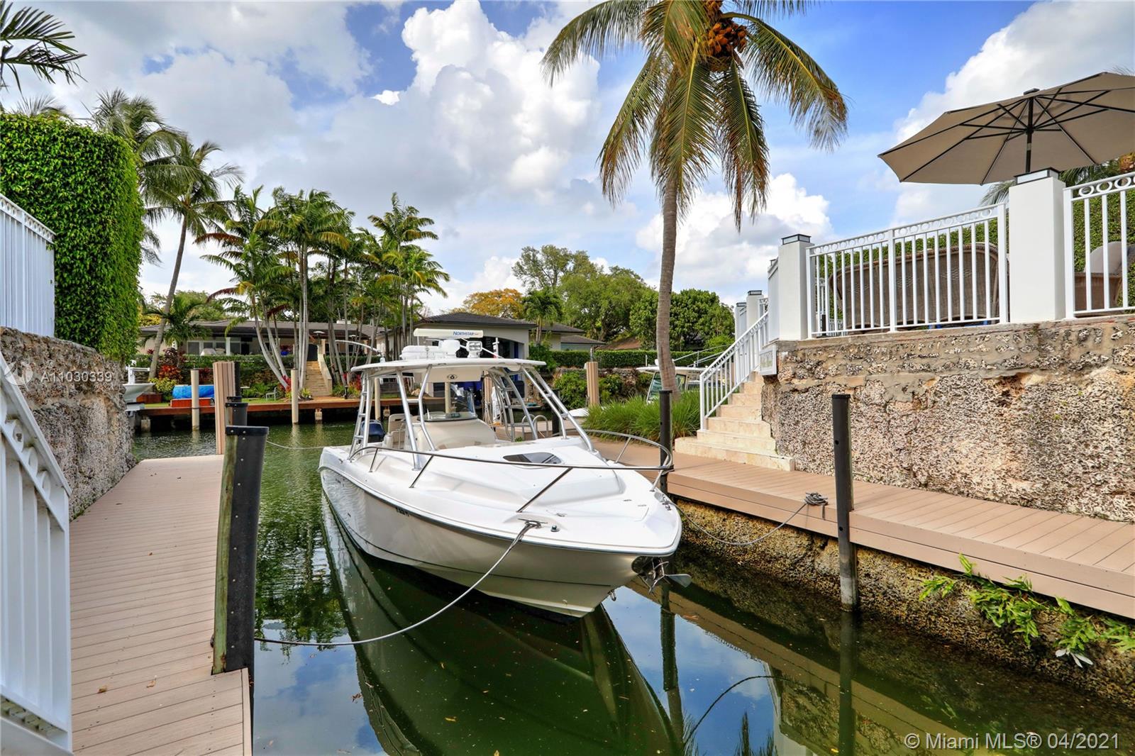 Ever dream of going on a sunset cruise from the comfort of your home? Well this is it! An exquisite gated 5 bed/4 bath pool home fully renovated in 2017 w/the Mahi canal of the South Coral Gables waterway as its backyard. Equipped w/a private dock & 75' of water frontage + a cut out, it has serene details throughout. A Mahogany impact door greets you to a charming sitting area & a vaulted ceiling Family Room. All bedrooms have walk-ins. The 1st floor has a Master bedroom w/patio pool deck access & 2 walk-ins + 2 more bedrooms w/1 as an en-suite. On the 2nd floor are 2 bedrooms w/a Jack & Jill bath w/separate shower & soaker tub. Others: PGT impact windows, Subzero/Wolf appliances, custom kitchen/bath cabinets, marble counters, 2-car garage, a laundry room & Azek flooring for dock/patio.