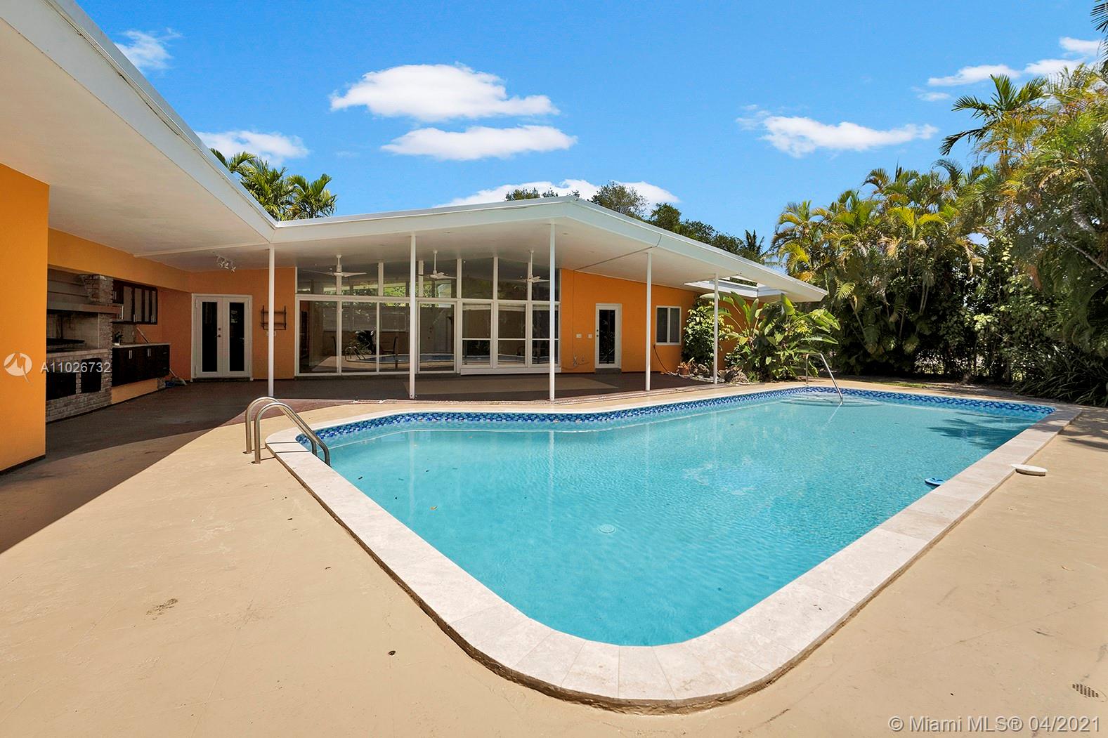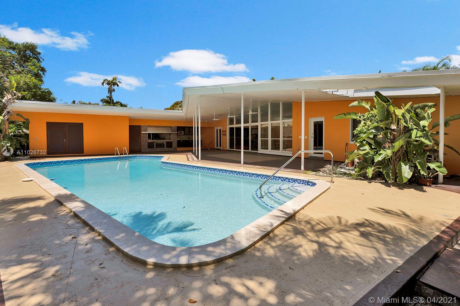 MID-CENTURY POOL HOME IN A HUGE CORNER LOT IN THE PRESTIGIOUS NEIGHBORHOOD OF MIAMI-SHORES WITH GREAT POTENTIAL TO RENOVATE AND MODERNIZE. VAULTED CEILINGS & WALLS OF GLASS OVERLOOK THE POOL. NATURAL LIGHT AND LANDSCAPING CREATE A RETREAT PERFECT FOR FLORIDA LIVING. MAIN ROOM WITH PRIVATE BATHROOM AND A WALK-IN CLOSET OVERVIEWS THE GARDEN. ONE ROOM WITH PRIVATE BATHROOM AND PRIVATE ENTRANCE CAN BE USED AS AN EFFICIENCY, GUEST QUARTERS, IN-LAW SUITE, ARTIST STUDIO AN! 2 CARPORT SPACES CAN BE CONVERTED INTO A GARAGE. WASHER AND DRYER IN LAUNDRY ROOM. LOTS OF SPACE TO ENTERTAIN IN THE FULL EQUIPPED BBQ AREA BY THE POOL. THIS IS AN ESTATE PROPERTY AND THE SALE IS SUBJECT TO COURT APPROVAL.