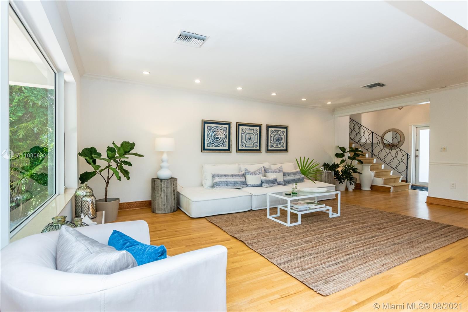 Southeast Gables Gem on Quiet, Tree-Canopied Street. This updated home has a lovely setting in a prime location, centered in a half-moon formed by South Miami, Coral Gables & Coconut Grove. The bi-level layout houses 2 bedrooms + 1 bath on the upper level, w/2 additional bedrooms & 2 baths on the lower level. The open concept creates a space that feels much larger than the floorplan suggests. Sunshine pours thru wall-to-wall & floor-to-ceiling windows. The bright, renovated kitchen w/a breakfast nook gleams w/stainless steel appliances and a crisp, white & aqua color palette. Recessed lighting, pristine light wood & creamy marble floors, a wrought-iron design stairway bannister, and terracotta patio tiles fashion warm decorative touches flowing from the interior to outdoor living spaces.