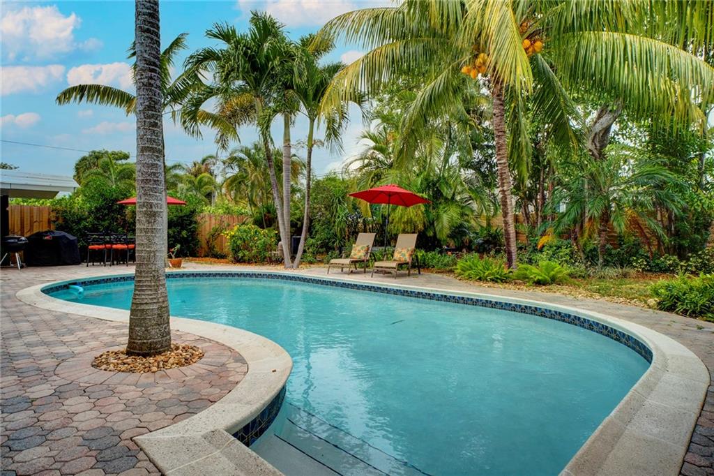 WELCOME TO THE MANGO BUNGALOW!! 3 BEDROOMS ~ 1 BATHROOM POOL HOME LOCATED IN DESIRABLE POINSETTIA HEIGHTS! LOTS OF UPDATES WITH A MID CENTURY VIBE! SLEEK UPDATED KITCHEN AND BATHROOM! TV ROOM PLUS ADDITIONAL SITTING ROOM! TILE FLOORS THROUGHOUT! TROPICAL RESORT LIKE FENCED IN YARD WITH LUSH LANDSCAPING AND FREEFORM HEATED POOL! SOME UPDATES INCLUDE - NEW ROOF (2021) - NEW AC (2020) - NEW POOL HEATER (2020) - NEWER WINDOWS (NONE ARE IMPACT, BUT THERE ARE SHUTTERS FOR EVERYTHING). THIS IS TRULY A MUST SEE!