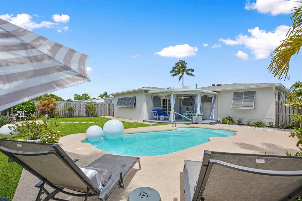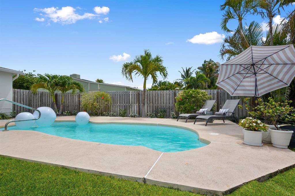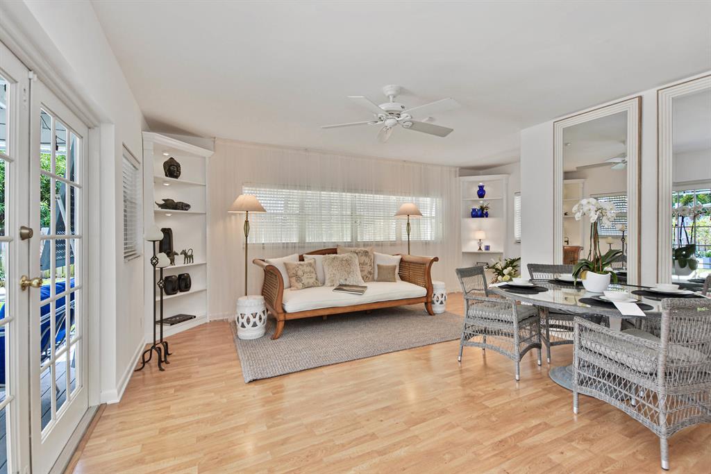 South of Southern Elegance! Remarkable renovation of this 2 bedroom, 2 bath residence with pool, garage and the most amazing, graceful and sparkling interiors and exteriors. Easily convertible to 3 bedrooms. Freshly landscaped exterior with perimeter foliage, neatly manicured low maintenance front yard. Professionally painted exterior and door which opens to gleaming terrazzo floors enhanced by remarkable finishes and great spaces also professionally painted. A large living room opens to a beautifully renovated kitchen with custom cabinetry and additional built ins for great storage and pantry. This area flows into the spacious family room with dining area that is spectacular in every way. Two bathrooms have been designer transformed into todays' tastes and live large.