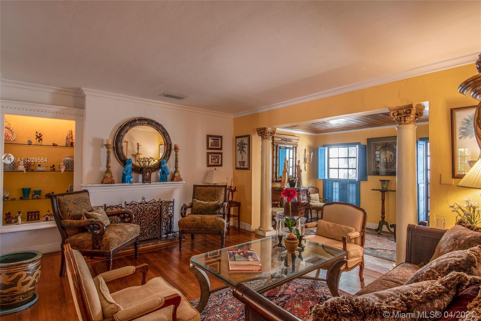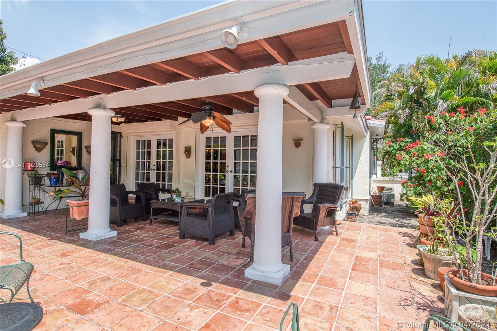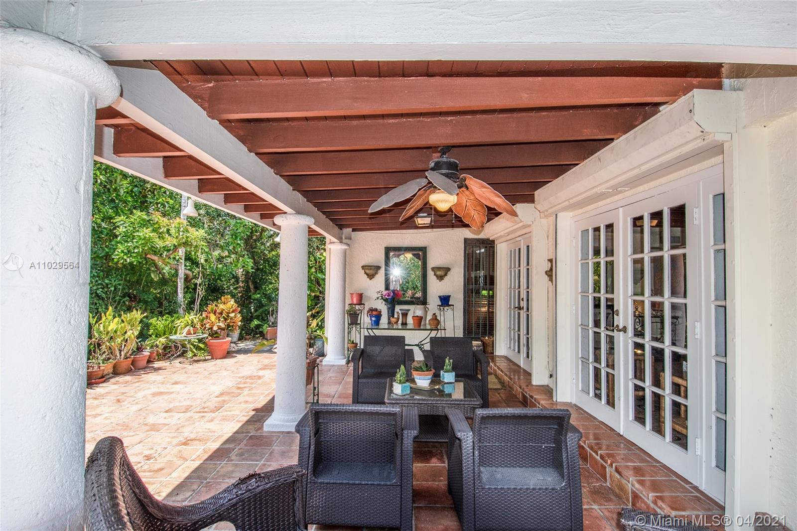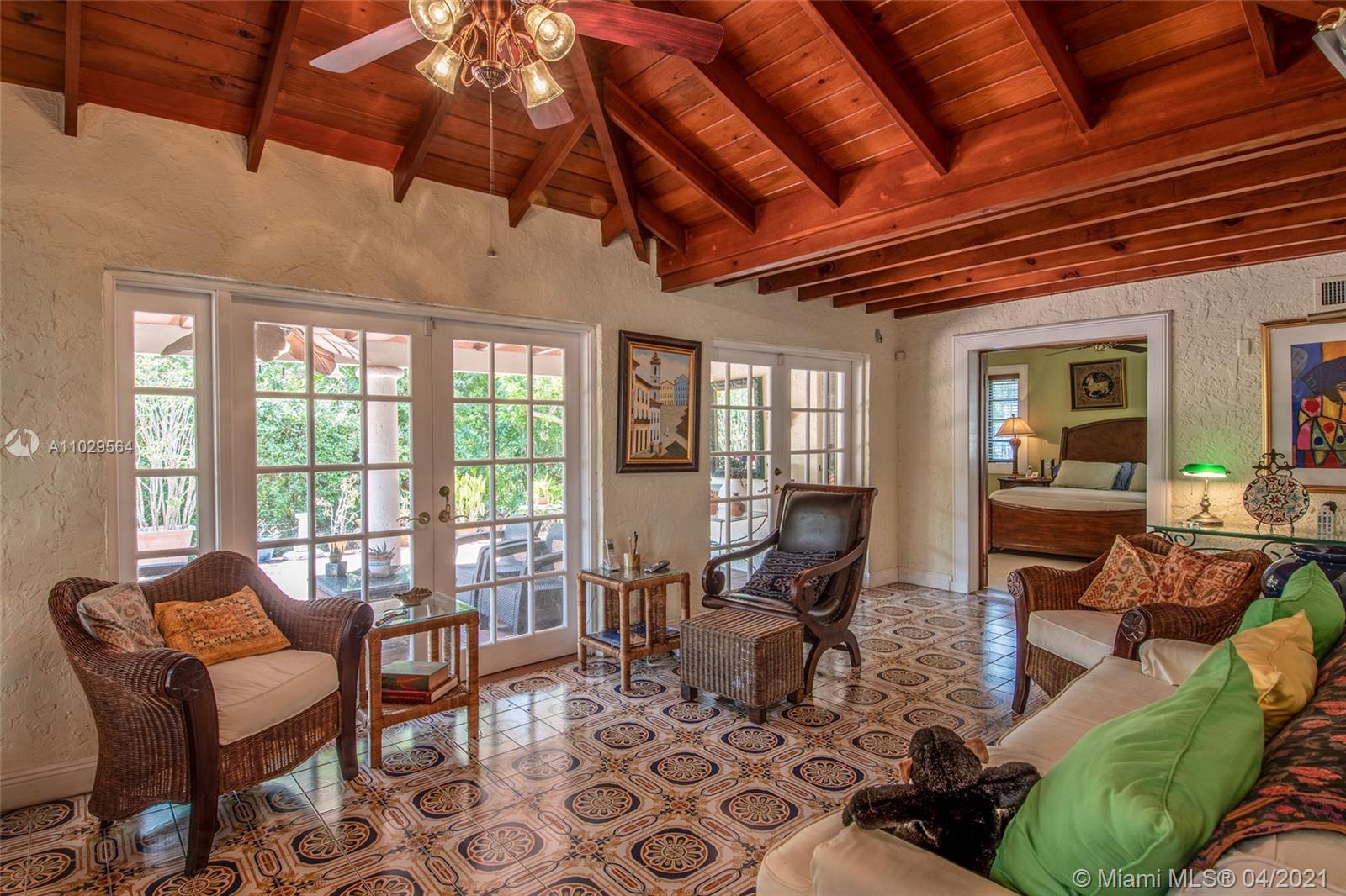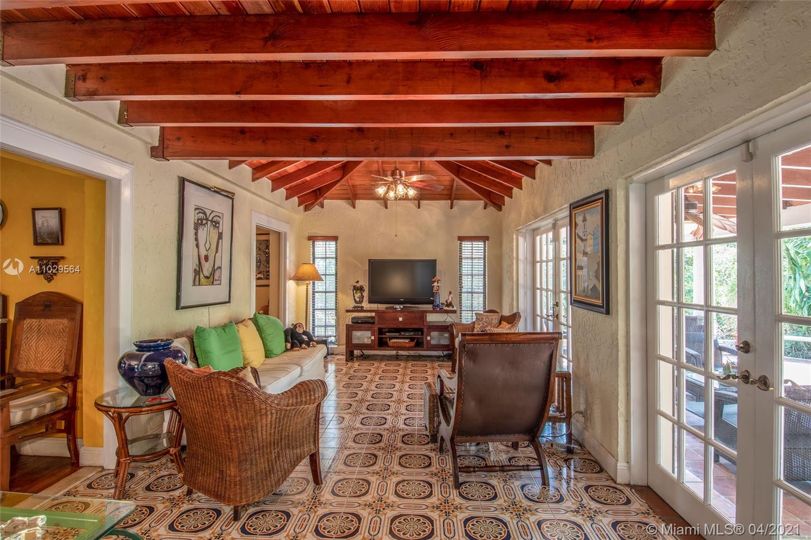 Charming and authentic Old Spanish style home located on a quiet cul-de-sac, in the Santiago historic district, close to downtown Coral Gables and the Granada golf course. Real wood floors, Spanish tiles and a fireplace give this home a classic appeal. This house features a split floor plan, a huge Florida room with vaulted ceilings, wood beams, and a large covered patio perfect to entertain. A new roof was installed in 2019 and the appliances were upgraded as well. Must see!