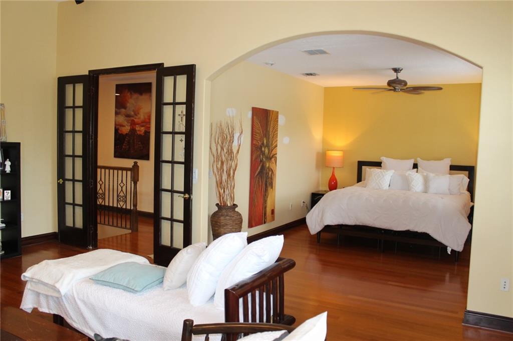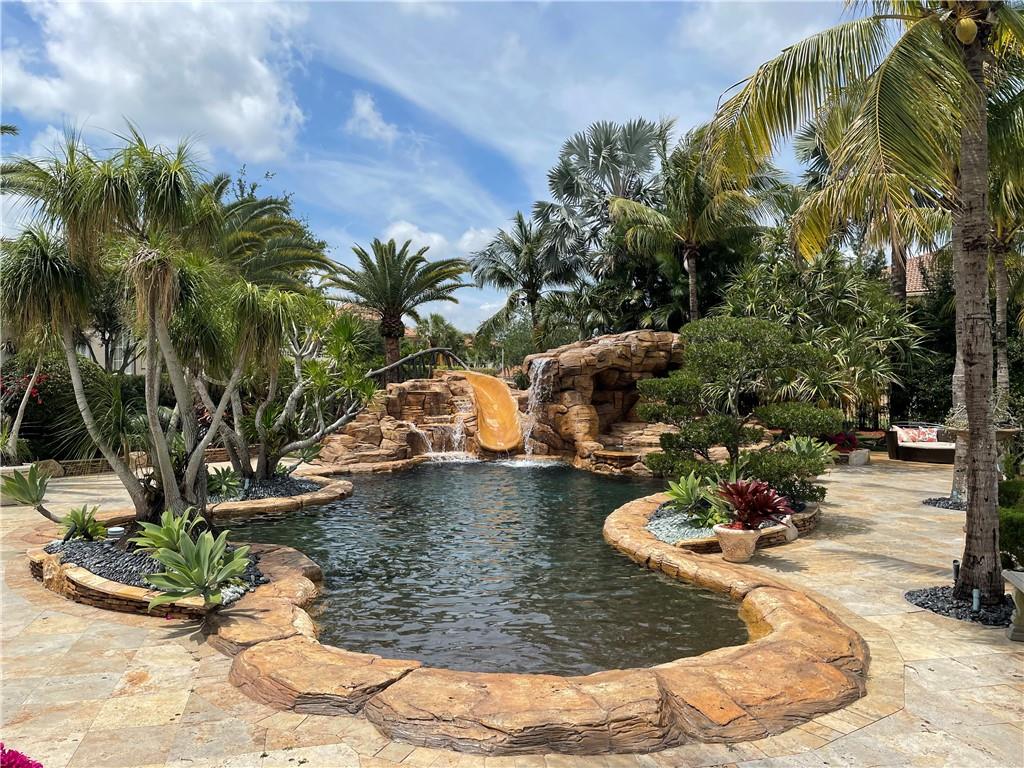 Enjoy resort style living in your own backyard with a gorgeous, professionally landscaped, lakefront lot (285 ft) with pool, hot tub, waterfalls, fountain, water slide, temple, walkways, and large covered porch with built in bar and grill. The home has a new roof (2020), new A/C’s (2016, 2020), updated kitchen with granite counters and stainless appliances, and media room. The first floor has marble floors with wood on the second floor. The large master suite has been expanded to include a spacious sitting area. Each of the bedroom suites has its own bath. Positioned on an apprx. ½ acre lot at the end of a cul de sac the home offers lots of privacy, close to shopping, schools and I-75. This home could be converted to a five (5) bedroom.
