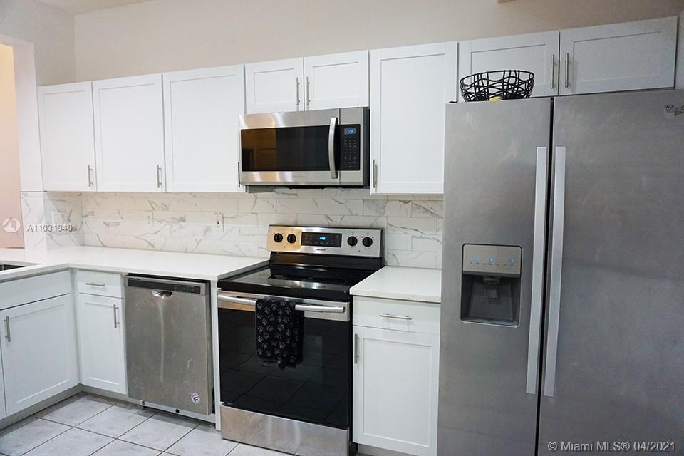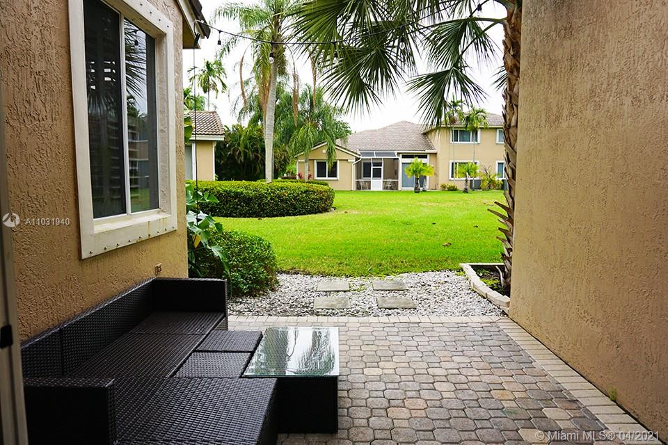 Beautiful 3 bedroom, 2 1/2 bath townhome in the Courtyards of Grand Palms in desirable Pembroke Pines. Enjoy the open design with upgrades throughout including high-end white kitchen cabinets, quartz counter tops, newer appliances, vaulted ceilings, wood and tile floors, updated bathrooms, wall in closet in master bedroom, paver driveway and 1 car garage with extended patio area outside. Great for entertaining family and friends or just enjoying the sunset outside. No expense spared in this amazing family townhome. Brand new roof being installed and ready to move in. Amenities include community pool, playground, golf course, tennis and gym. HOA includes roof repairs, exterior paint, lawn, cable, alarm and more. Must see.