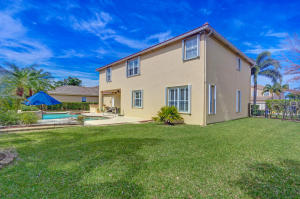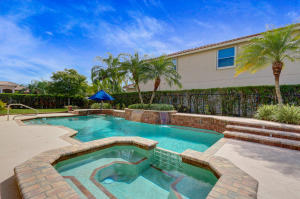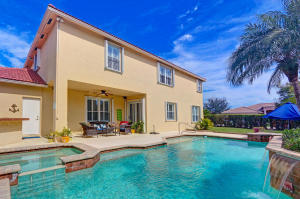 Wow this home is impressive! Rarely available 5/4/3 in the estate section of the highly desirable Stonehaven Community which is zoned for Wellington Schools without paying Wellington Taxes! Located on a corner lot on over 1/4 acre this home boasts an impressive entry with 30 foot ceilings and a formal living/dining area. Some of the many upgrades include full accordion shutters and high end plantation shutters on all windows. The gourmet kitchen has 42'' wood cabinets, newer SS Appliances, Corian Counters, Breakfast Bar and Walk in Pantry. The fully fenced and hedged back yard has a gorgeous pool and spa with a waterfall and in-pool table for enjoying drinks in the pool! There is also a covered patio and outdoor bar/summer kitchen. Show today as it will go fast!