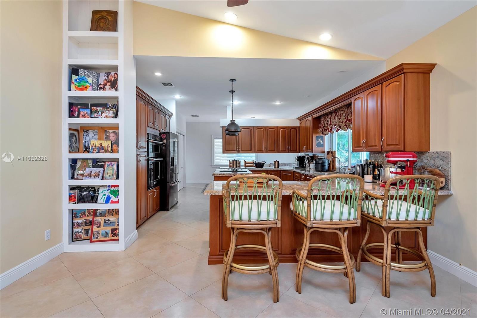 JUNE 27TH, SUNDAY, WELCOME TO THE OPEN HOUSE! 11-2 PM. Price just reduced! The home is situated on 1.08 acres of tropical paradise landscaping in the desirable neighborhood of Pine Tree Estates in Parkland. This spacious home has an open floor plan and impacts windows. The living side of the house has vaulted and high ceilings throughout with updated large ceramic tiles set on the diagonal and oak wood floors. All bedroom closets have custom wooden built-ins. Resort-style backyard living with extra-large pool and spacious terracotta tile patio. Circular driveway in front with a side driveway leading to the oversized three-car garage. The family room has a stone working fireplace with french doors. Cherry wood cabinets with granite countertops, stainless steel appliances.