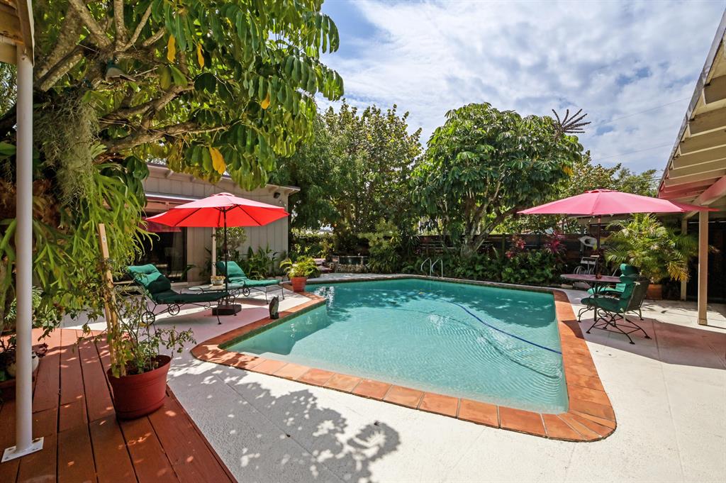 Open House Saturday, April 24rd from 12 to 2pm! Unique home in Southend just steps away from the Intracoastal! This 3 bedroom, 3 bath homes is truly paradise with secluded backyard and lush landscaping. Updated kitchen with white cabinetry and eat-in counter top. All spacious bedrooms. Multiple living areas make it perfect for entertaining. Additional office space and storage attached to the carport. This beautiful home is set in the perfect location just minutes from Palm Beach, Palm Beach International Airport, fabulous restaurants, and entertainment. With the large .39 acre lot, owners have the unique options to renovate to make the home their own or subdivide to build two new homes.