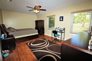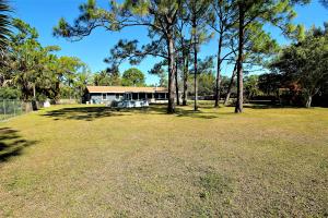 Do NOT let the year built deter you! This renovated home has impact windows, laminate flooring throughout, a new roof, and new drain field in 2012. Note the size of the master bedroom! The kitchen has Stainless Steel appliances-all just 4 yrs old. Concrete counter tops with tiled backsplash and a large eat in area. The back patio is HUGE! - Ready for entertaining. The exterior of the home is brick and cedar siding. The lot is fully fenced with an electric gate, and no pond. There are security cameras on all 4 corners with closed circuit TV's. All of this on a paved road in a great location of the Acreage! THIS HOME IS PRETTY MUCH MOVE-IN READY!