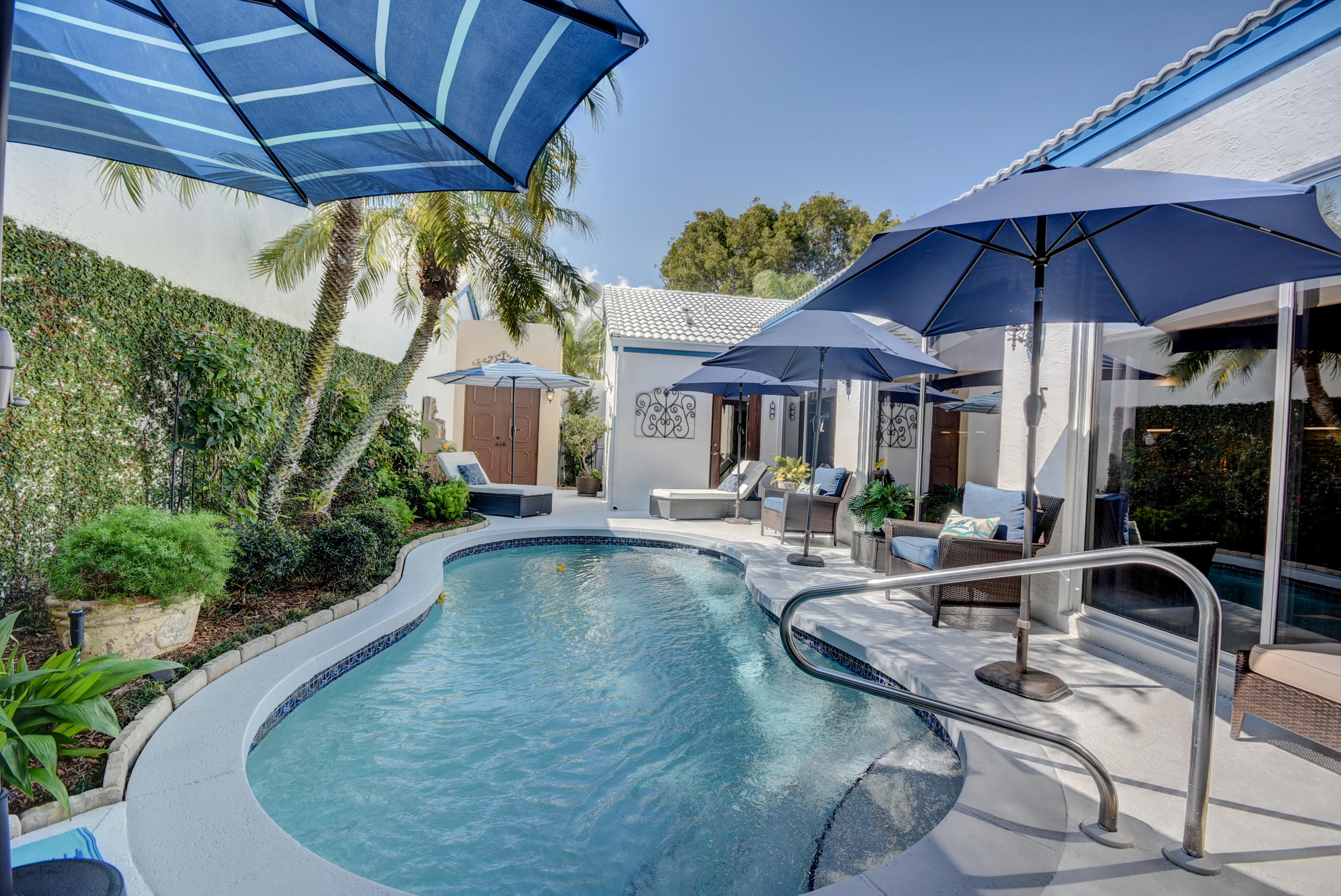 Stunning One-Story 3 Bed/2 Bath Courtyard home that shows like a model! Meticulously refurbished with state-of-the-art materials featuring spectacular Gourmet Chef's Kitchen with double pantry. Spacious Living/Dining area, Hardwood Floors throughout main rooms, custom plantation shutters & roll up solar shades, all closets w/custom built-ins. Enter paradise through the private courtyard with landscaped garden, outdoor shower, outdoor fountain, designer pool furniture (included in sale).