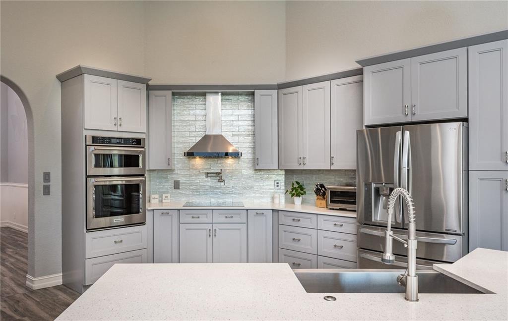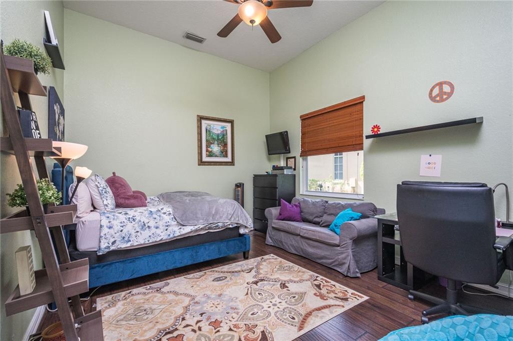 This house has it all! Impact windows and doors, updated flooring and beautifully remodeled kitchen with an induction stove with a pot filler, stainless steel appliances, shaker slow close cabinets and quartz countertops. This triple split floor plan has the master and small bedroom (great for an office or gym) on one side, 2 bedrooms with a jack and Jill bathroom on the other and a separate bedroom with a shared cabana bathroom in the back. Master bed is very spacious with a sitting area and has built ins in both master closets. Enjoy the indoor outdoor living with the screened in patio and pool that overlook the beautiful lake on your pie shaped lot while having the privacy with being on a cut-de-sac. Don't miss this!
