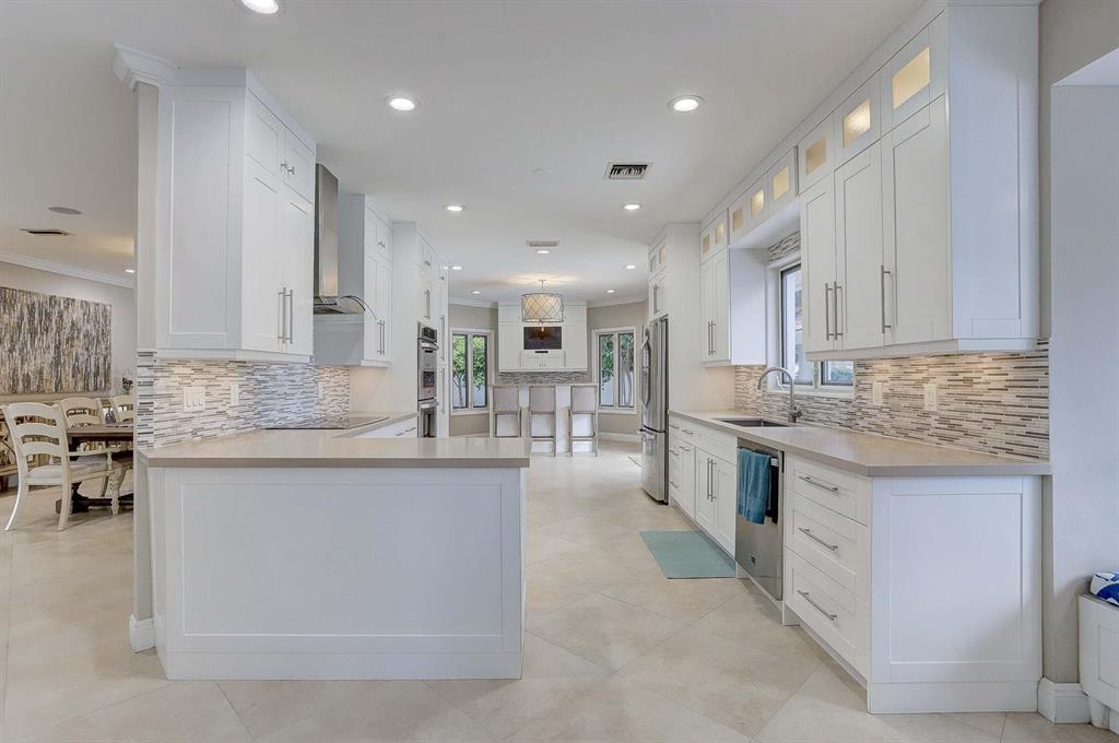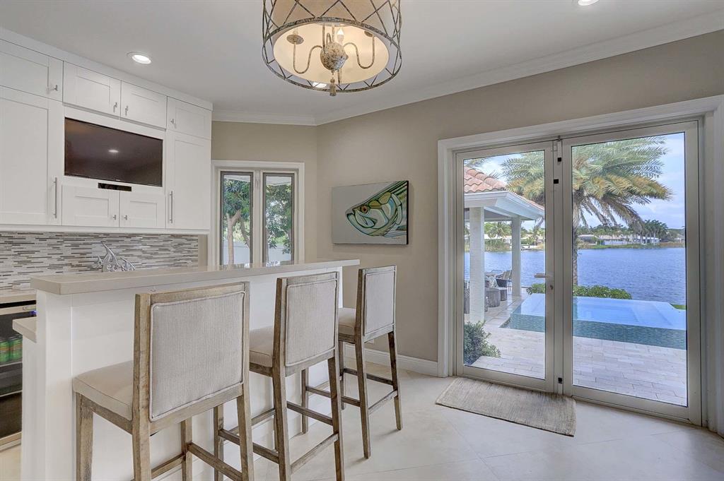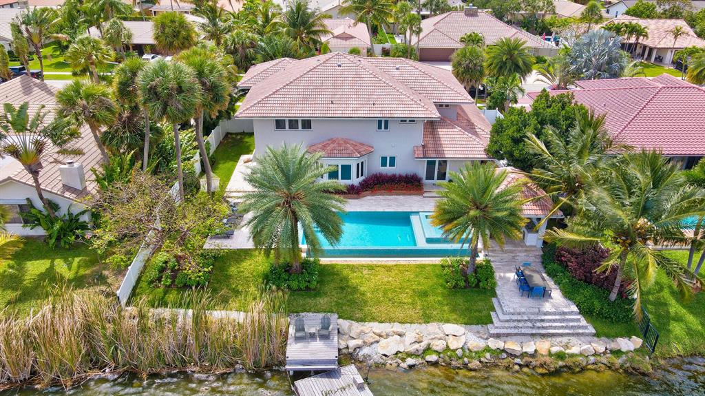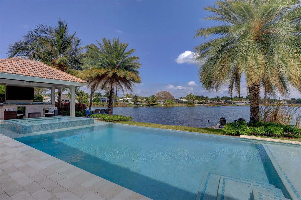 Amazing Home, Ready to move in, completely updated, beautiful lake front gem. This house and the view that comes with it are truly special in ''A'' Rated School District. Awesome neighborhood to live in East Boca, Minutes to the Beach & many Restaurants close by. This two story, 5 bedrooms, 3.5 baths comes with huge loft, Large kitchen with Stainless steel LG appliances, a great bar with a beverage refrigerator & wine cooler, huge living area and dining room, Hard Wood floors, tile, and crown molding throughout. Professionally designed backyard with beautiful lake views, fresh landscaping, covered patio, gazebo with summer kitchen, infinity pool, oversized hot tub, dock, and motorized floating dock. . Garage with built in storage shelving. Fully wired sound system inside and out.