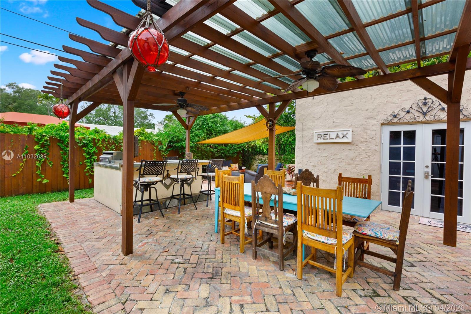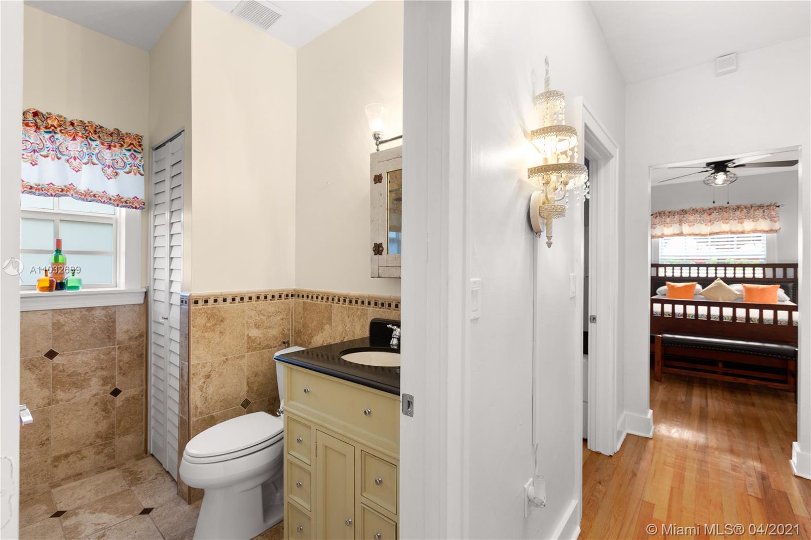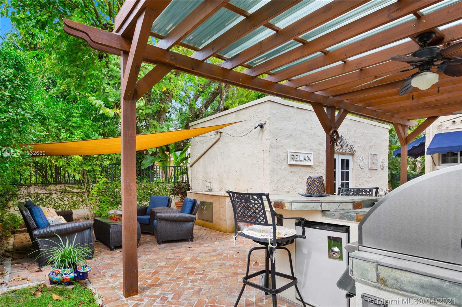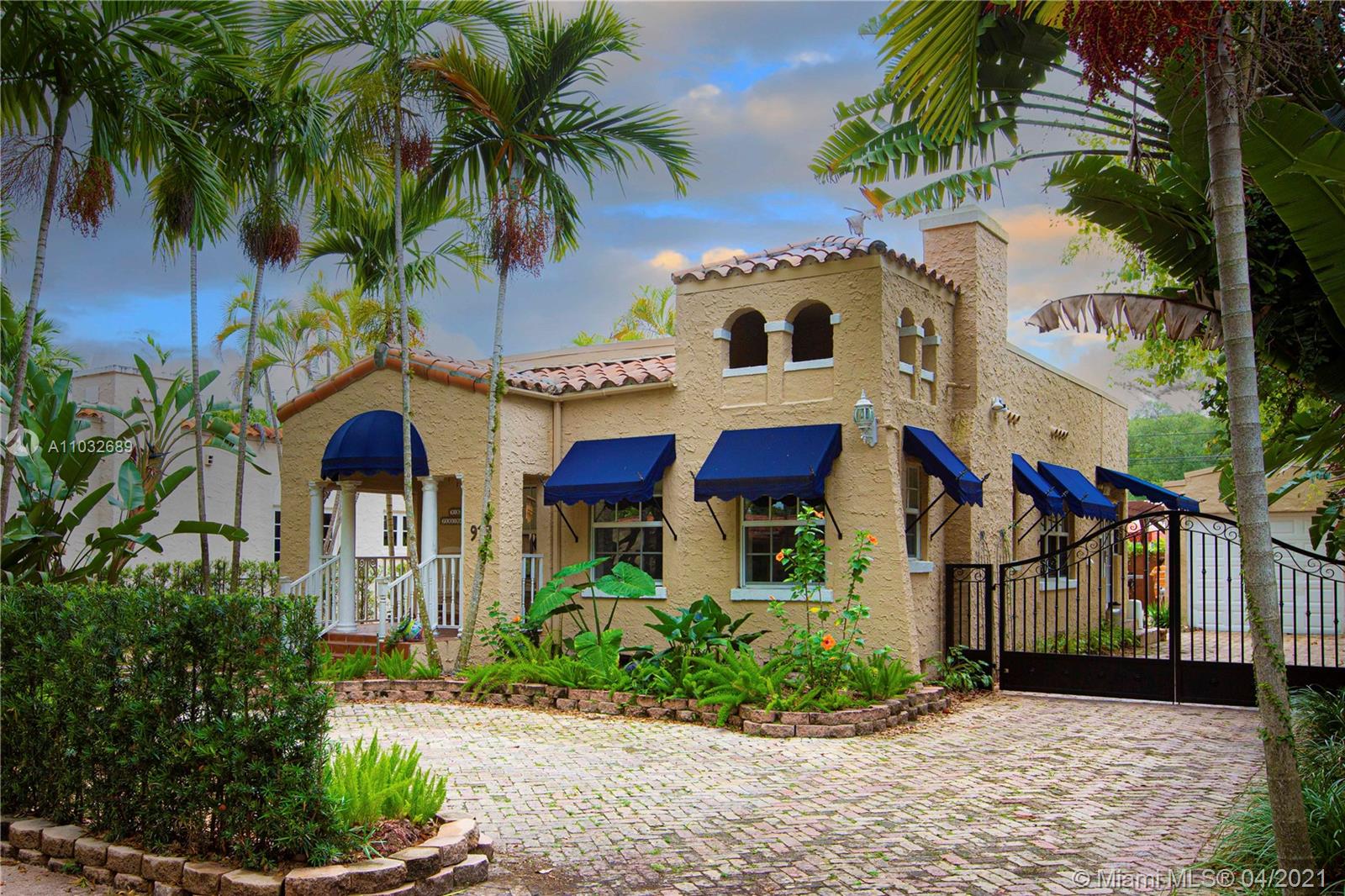 Beautifully Detailed Old Spanish style home. Main home is a 2 bedroom /2 baths. The guesthouse is a 1 bedroom/1bath. Master bedroom has 2 wall-in closets. The kitchen has been newly remodeled with wood cabinets and beautiful granite tops. The appliances are new including a Washer and Dryer in the kitchen area, in addition to a 150-bottle wine cooler. Restored Hardwood floors thru out the home. Working original fireplace located in the living area. Chicago Brick Driveway and Patio. Lushly Landscaped backyard with Private fence, Pergola and Outdoor Entertaining Kitchen. This beautiful 1928 home has has been totally updated and is in Move in conditions with impact window and doors.