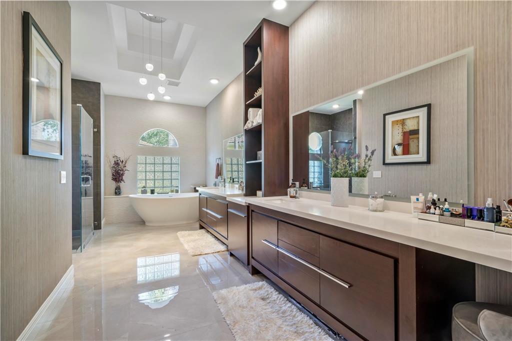 This beautifully maintained & updated home is located in one of Coral Springs most sought after gated communities on a pie shaped cul-de-sac lot! Features include top of the line finishes with a foyer entrance, formal living & dining rooms, family room, crown molding, tray ceilings, remodeled laundry room & bathrooms, stunning light fixtures and fans and wood plank flooring. The kitchen has white cabinets, quartz counters, a center island, double ovens, Bosch appliances and a SS sink. The master suite has a sitting area, his & her built-in closets and a spa like bathroom with a frameless glass walk-in shower, a stone soaking tub, dual sinks, wood vanities and quartz counter tops! Enjoy the brick paver covered patio & the tropically landscaped pool! South Florida Living at its best!