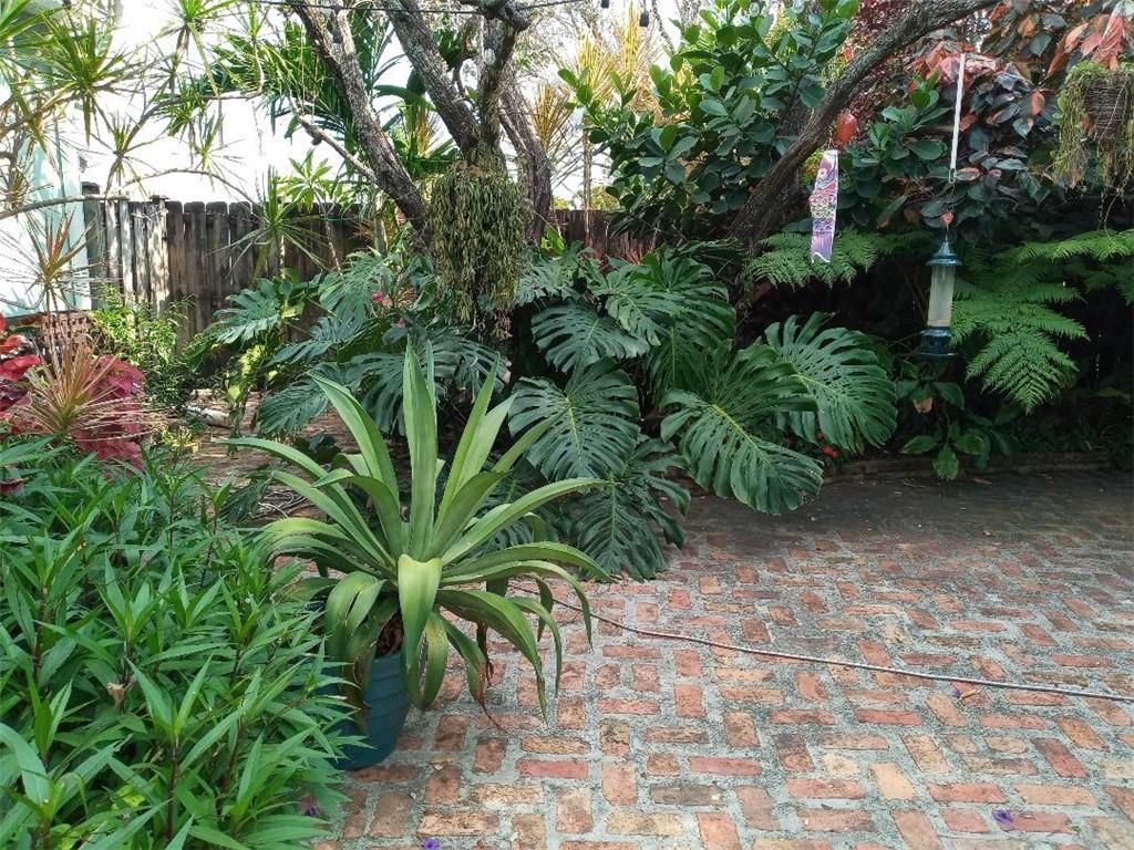 Beautiful bungalow steps from Poinsettia Heights. Original hardwood floor in main rooms, tile in kitchen and bath. The large open living room boasts a rock fireplace, recessed lighting and open rooms to include a dining area open to the kitchen. The kitchen has propane to the stove. Good size bedrooms and closets. Master fits king size bed with plenty of room to spare. The kitchen, dining and the 2nd bedroom overlooks a park-liked back yard that is green and tropical. Fantastic for all your entertaining. Screened Florida porch off the dining area. Storage shed in the back yard and a oversized one car garage. Impact window, French doors have metal electric roll down door. Tile roof. Buyer to verify all sq footage. Yard is on well water.