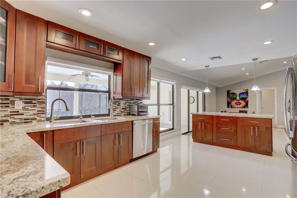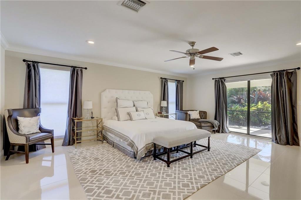 Fabulous, turn key open concept estate home with the finest materials and high end finishes, meticulously kept, featuring 5 Bedrooms, 3.5 Bathrooms, front and rear covered patios, and an over-sized, attached 2 Car Garage. Beautiful screened in salt water pool and patio with new pool equipment, pool heater, lush, tropical landscaping with huge back & side yards. All hurricane impact glass windows and doors. Full home backup generator. Located on a quiet, interior cul-de-sac, oversized 0.44 acre corner lot. Ultra luxurious master Suite w/glass doors overlooking the pool and patio, an ensuite master bath with enormous frameless glass shower including body sprays, handheld and rain head, free standing stone tub with tub filler and hand held spray, as well as oversized, quartz counter top