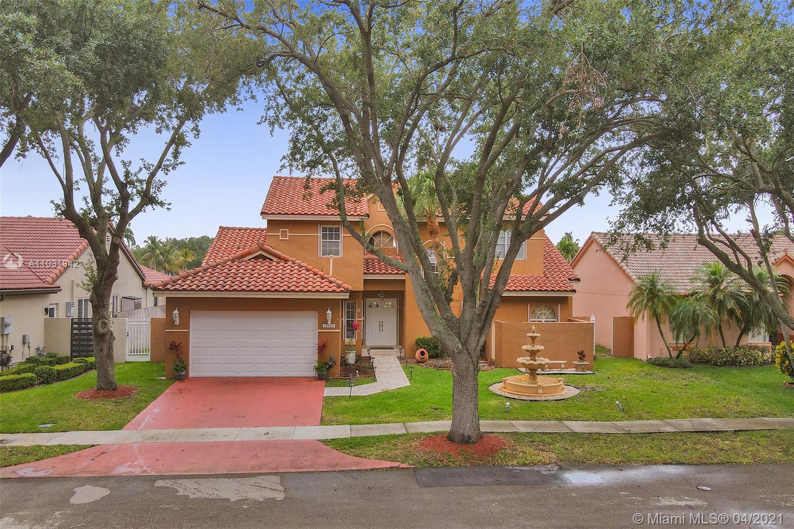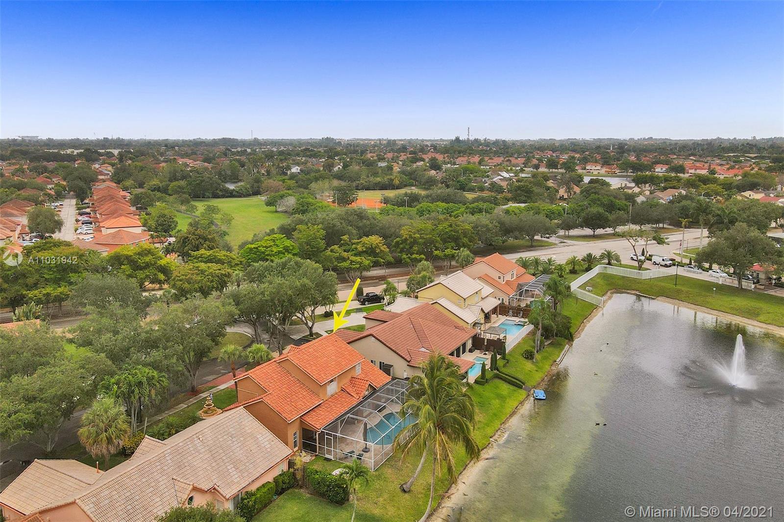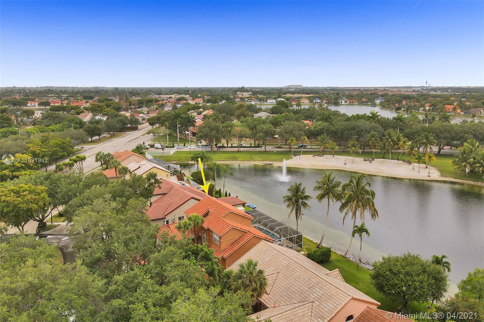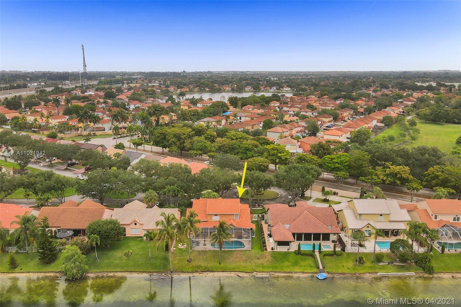THE TRIPLE CROWN of Lakes on The Green with rarely available together Cul de sac, Lakefront & Pool! Located in coveted & low taxed 33015, unincorporated Dade County. Magnificent 2 Story, Spanish style family home. This beauty boasts marble floors downstairs, 4 bedrooms, 2.5 baths, 2 car attached garage & over 2,600 SqFt of living area. Generous, extra large lot (net size 11,200 SqFt & over 14,000 SqFt gross to lake) Gorgeous, wide open water views & amazing Sunsets from entrance & about every room. Large, open kitchen, granite tops, wood cabinets, SS appliances, natural gas & laundry room. Beautiful & spacious master suite, double vanities, shower & tub ensuite. Stamped concrete driveway, Spanish clay tiles, bright & airy floor plan, vaulted ceilings & lots of windows. Private community.