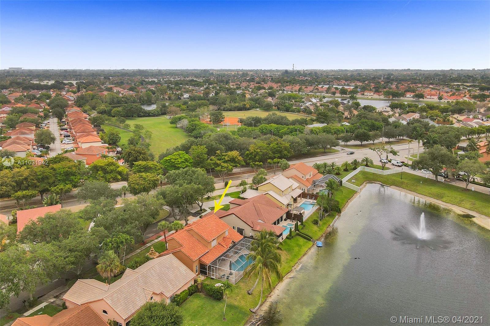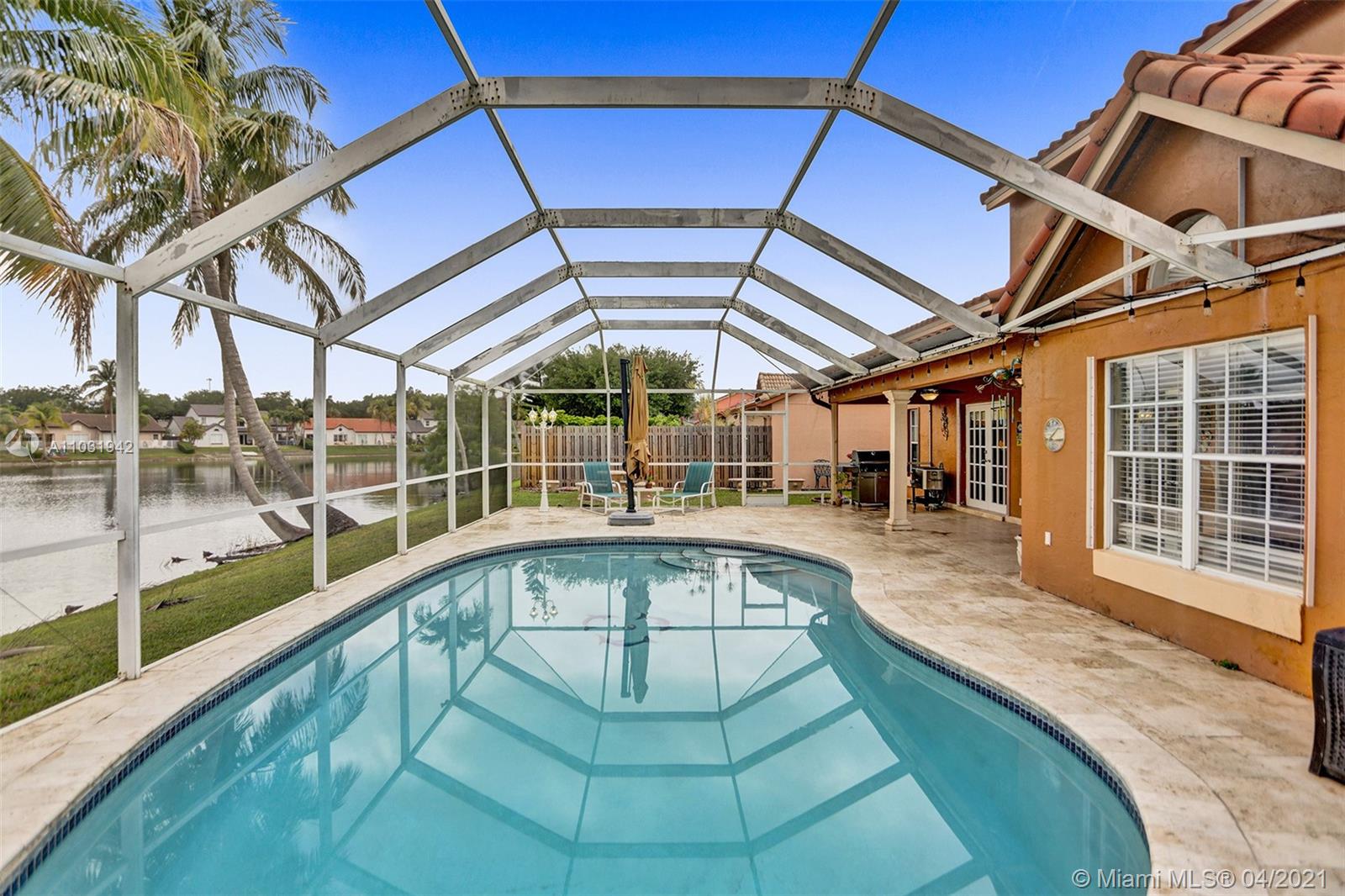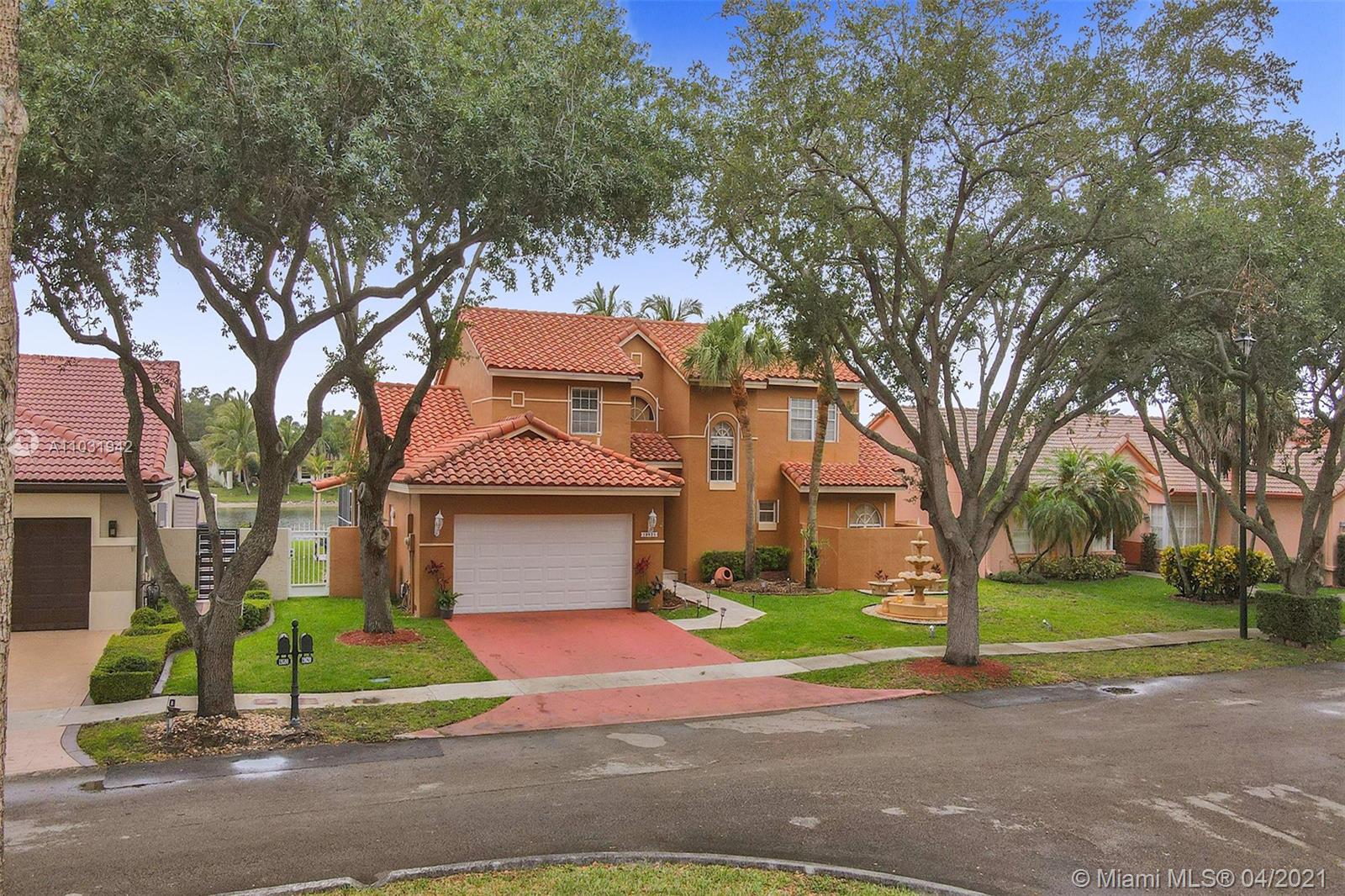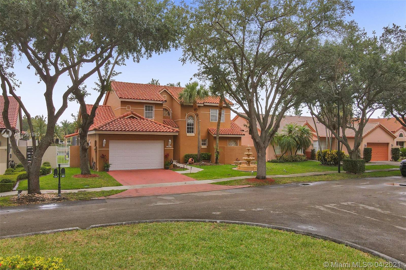 THE TRIPLE CROWN of Lakes on The Green with rarely available together Cul de sac, Lakefront & Pool! Located in coveted & low taxed 33015, unincorporated Dade County. Magnificent 2 Story, Spanish style family home. This beauty boasts marble floors downstairs, 4 bedrooms, 2.5 baths, 2 car attached garage & over 2,600 SqFt of living area. Generous, extra large lot (net size 11,200 SqFt & over 14,000 SqFt gross to lake) Gorgeous, wide open water views & amazing Sunsets from entrance & about every room. Large, open kitchen, granite tops, wood cabinets, SS appliances, natural gas & laundry room. Beautiful & spacious master suite, double vanities, shower & tub ensuite. Stamped concrete driveway, Spanish clay tiles, bright & airy floor plan, vaulted ceilings & lots of windows. Private community.