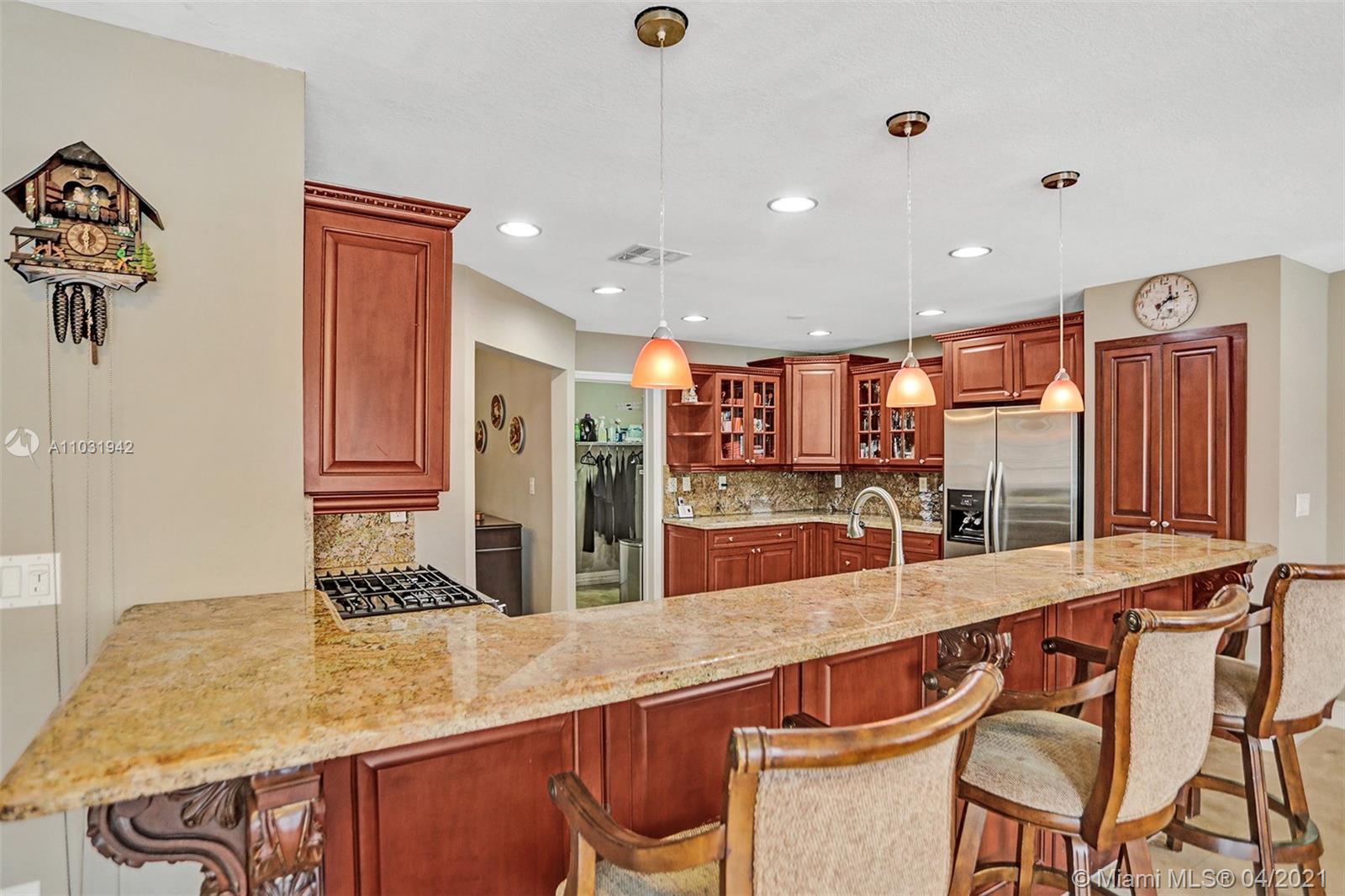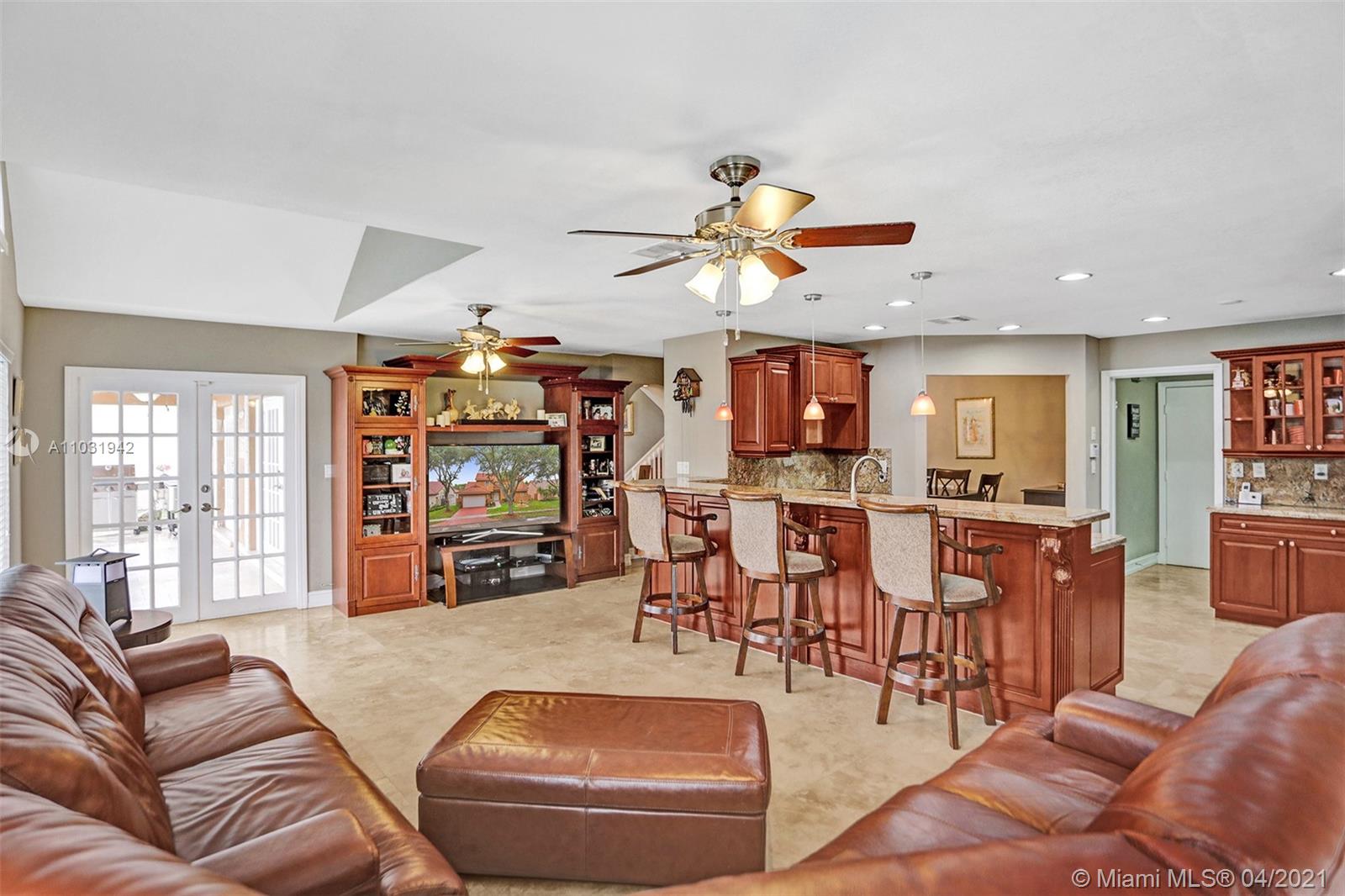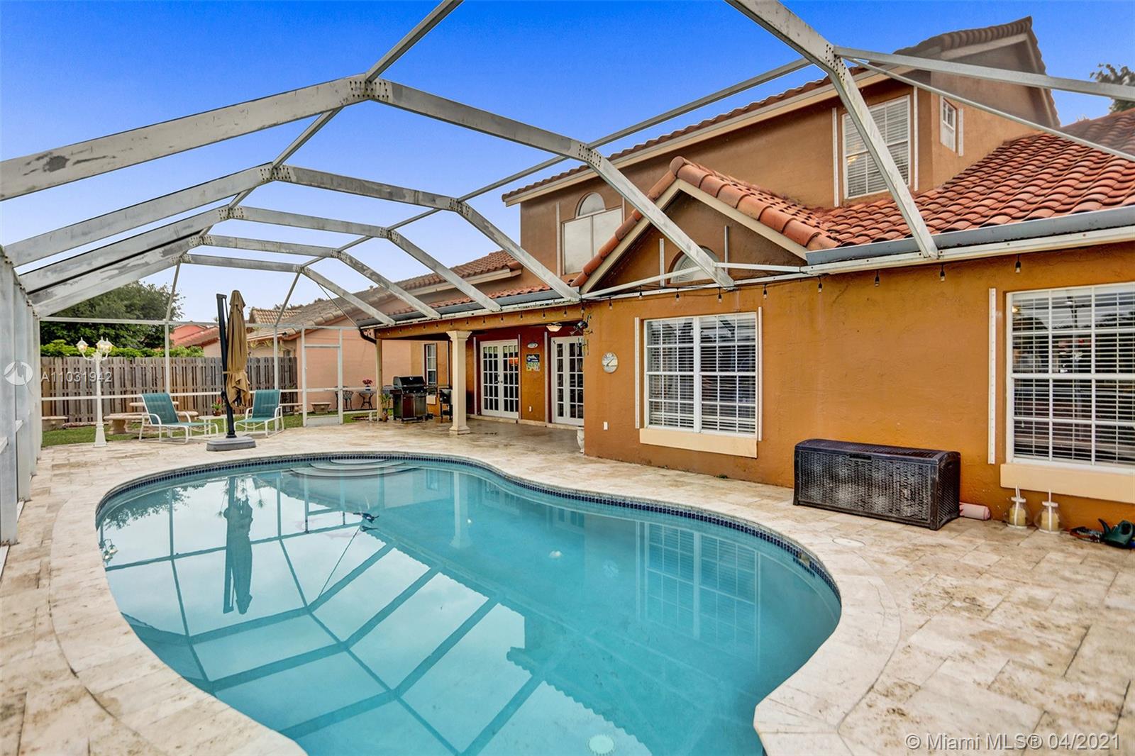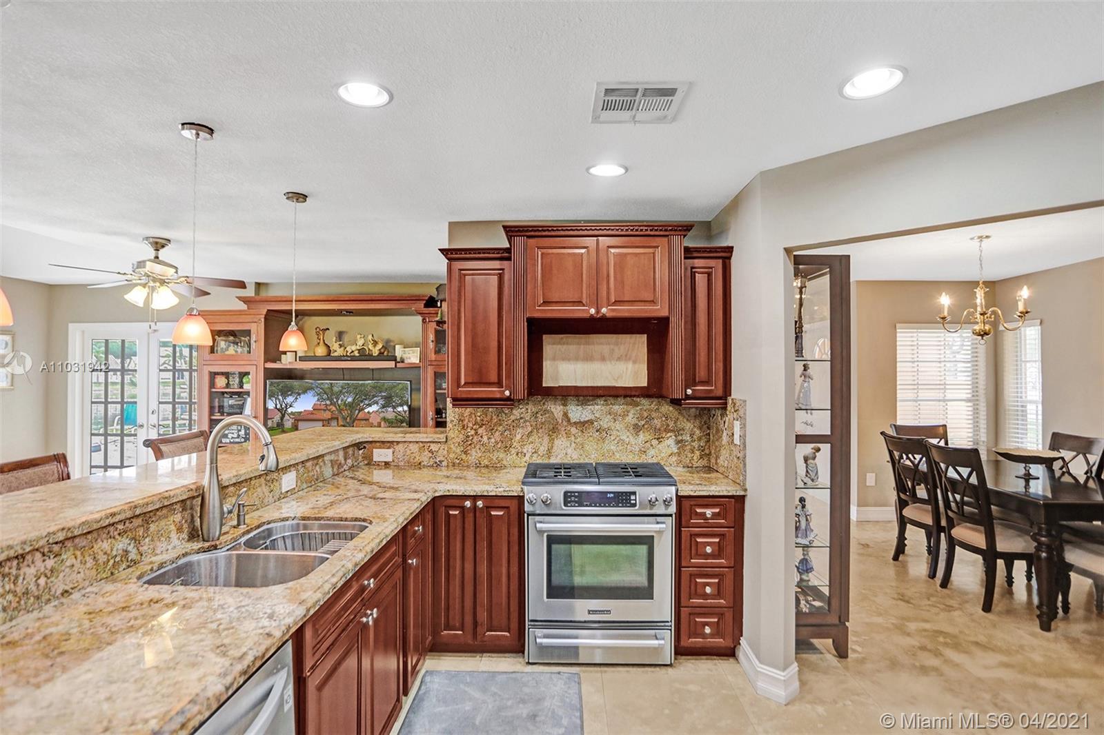 THE TRIPLE CROWN of Lakes on The Green with rarely available together Cul de sac, Lakefront & Pool! Located in coveted & low taxed 33015, unincorporated Dade County. Magnificent 2 Story, Spanish style family home. This beauty boasts marble floors downstairs, 4 bedrooms, 2.5 baths, 2 car attached garage & over 2,600 SqFt of living area. Generous, extra large lot (net size 11,200 SqFt & over 14,000 SqFt gross to lake) Gorgeous, wide open water views & amazing Sunsets from entrance & about every room. Large, open kitchen, granite tops, wood cabinets, SS appliances, natural gas & laundry room. Beautiful & spacious master suite, double vanities, shower & tub ensuite. Stamped concrete driveway, Spanish clay tiles, bright & airy floor plan, vaulted ceilings & lots of windows. Private community.